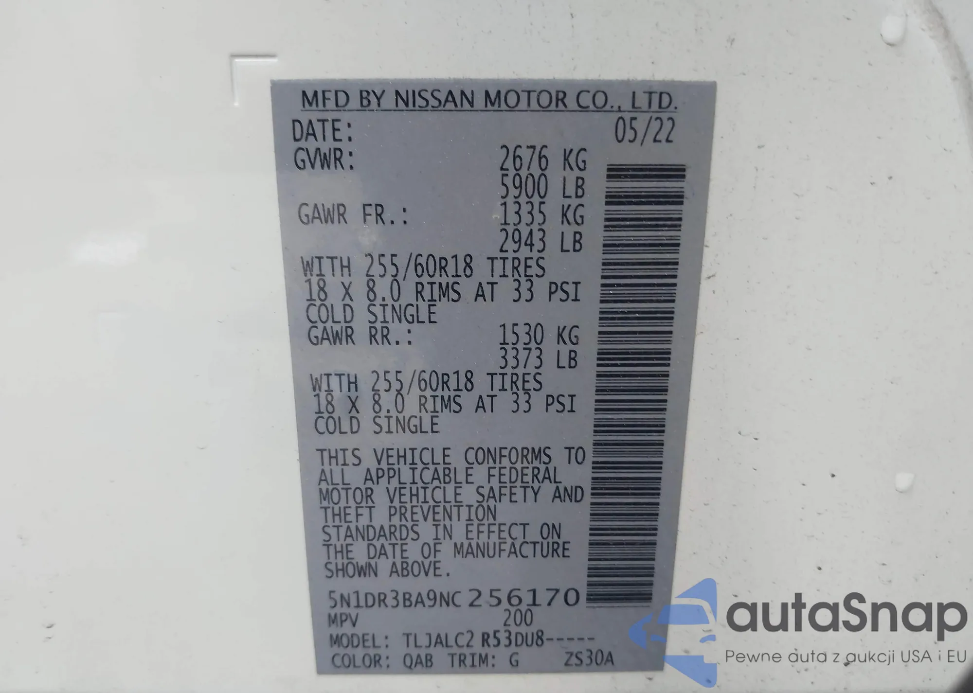 • VIN: 5N1DR3BA9NC256170