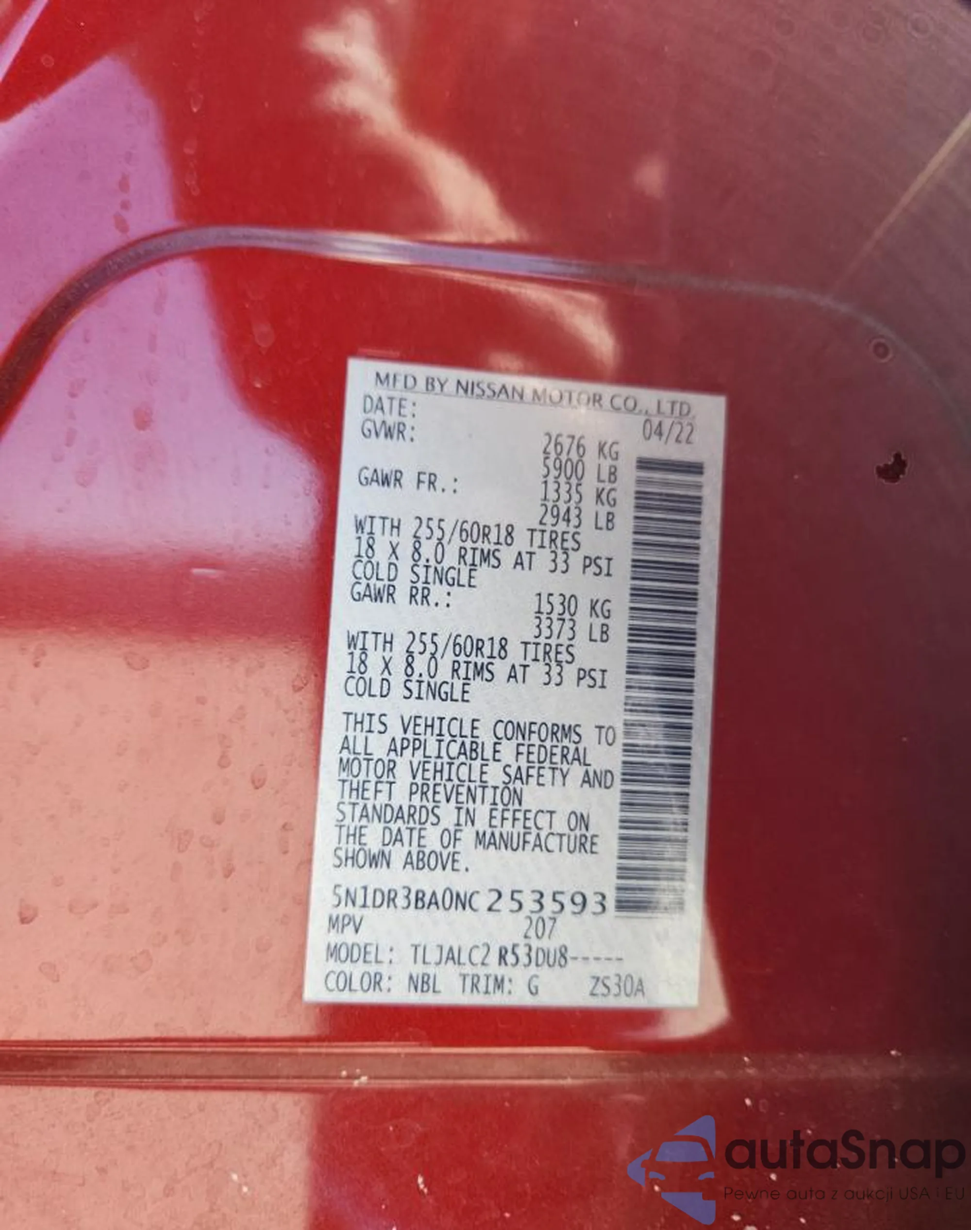 VIN: 5N1DR3BA0NC253593