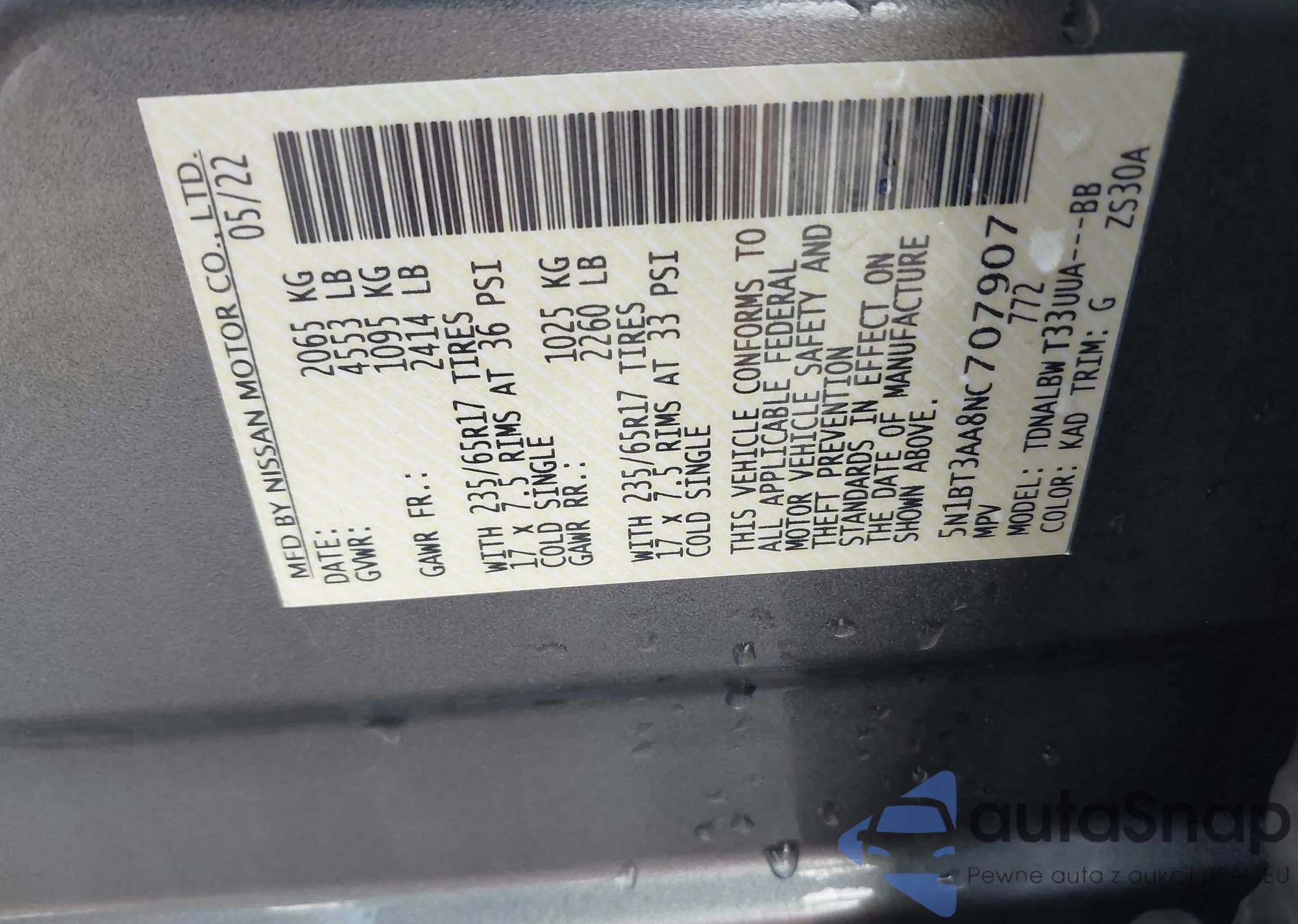 VIN: 5N1BT3AA8NC707907