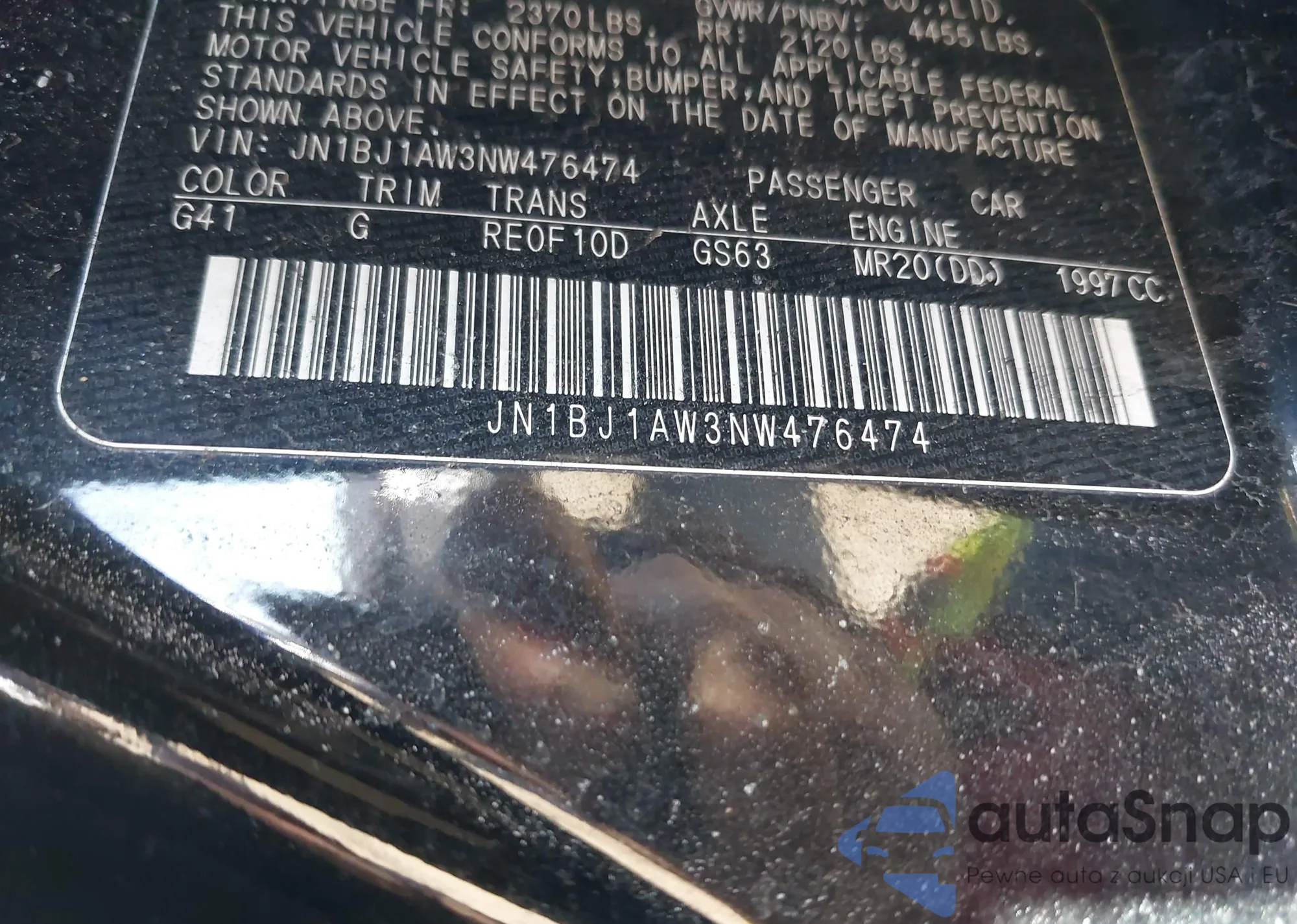 VIN: JN1BJ1AW3NW476474