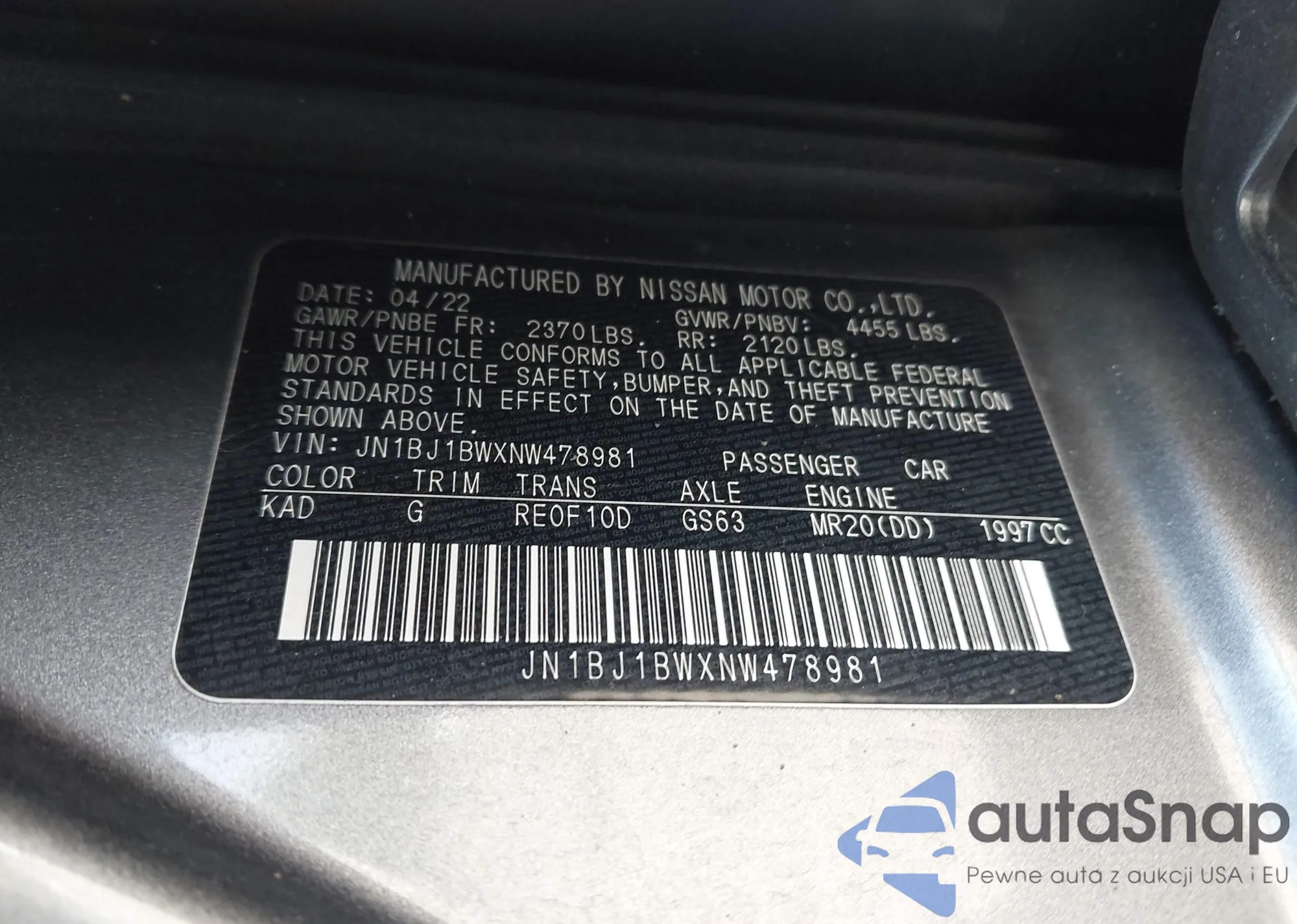 VIN: JN1BJ1BWXNW478981