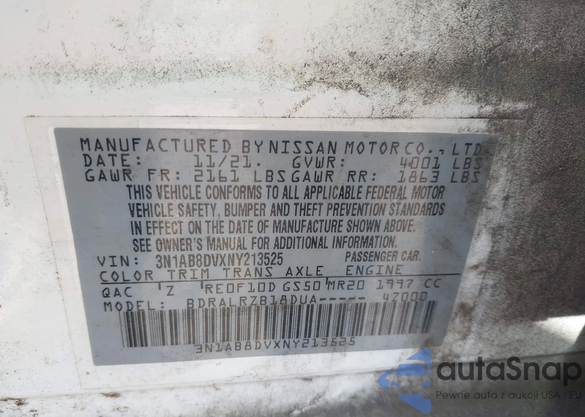 VIN: 3N1AB8DVXNY213525