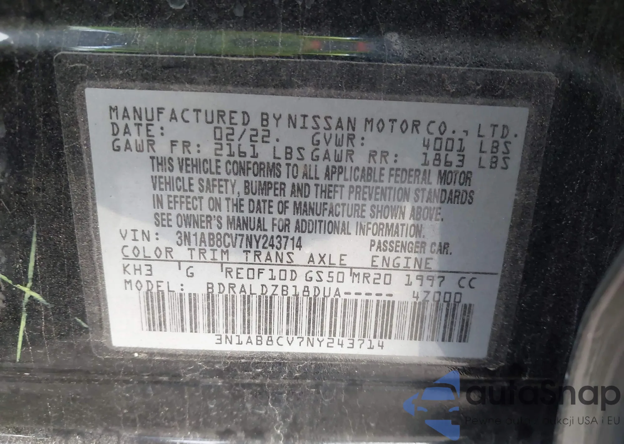 • VIN: 3N1AB8CV7NY243714