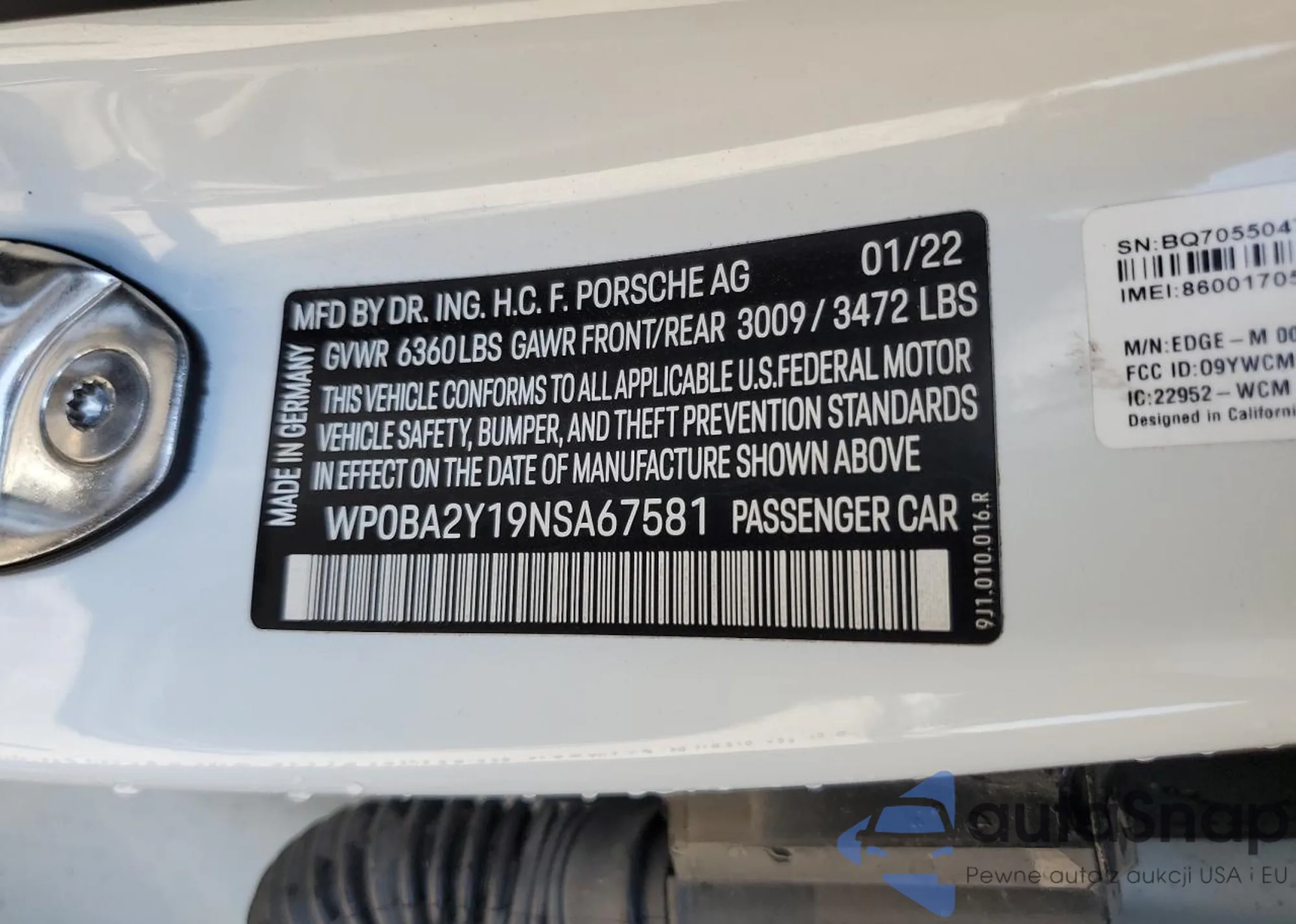 VIN: WP0BA2Y19NSA67581