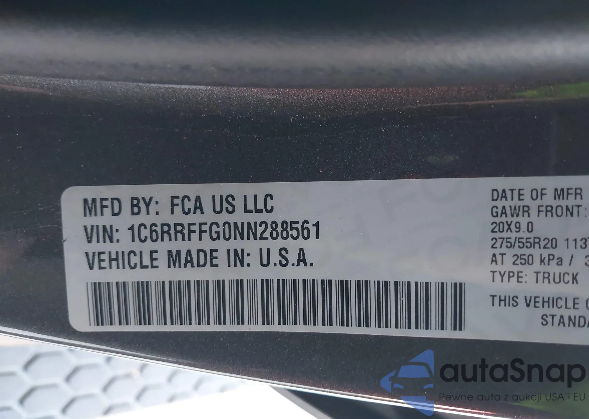 Автомобиль RAM 1500 2022 (VIN 1C6RRFFG0NN288561) ранее не участвовал в торгах. Документы чистые, пробег соответствует или ниже среднего по рынку. Продаётся страховой компанией — рекомендуем покупку. Доставка в порт займет около 6–8 недель.