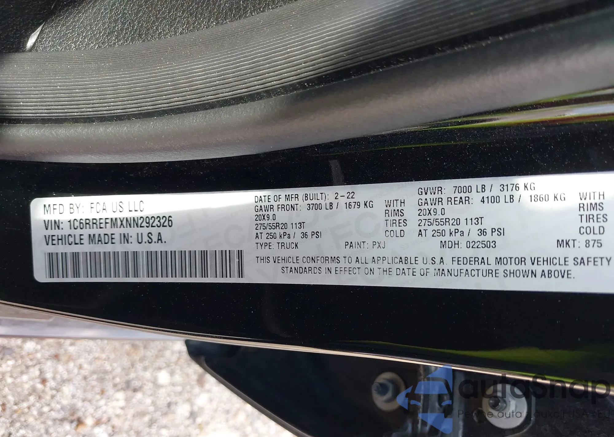 VIN: 1C6RREFMXNN292326