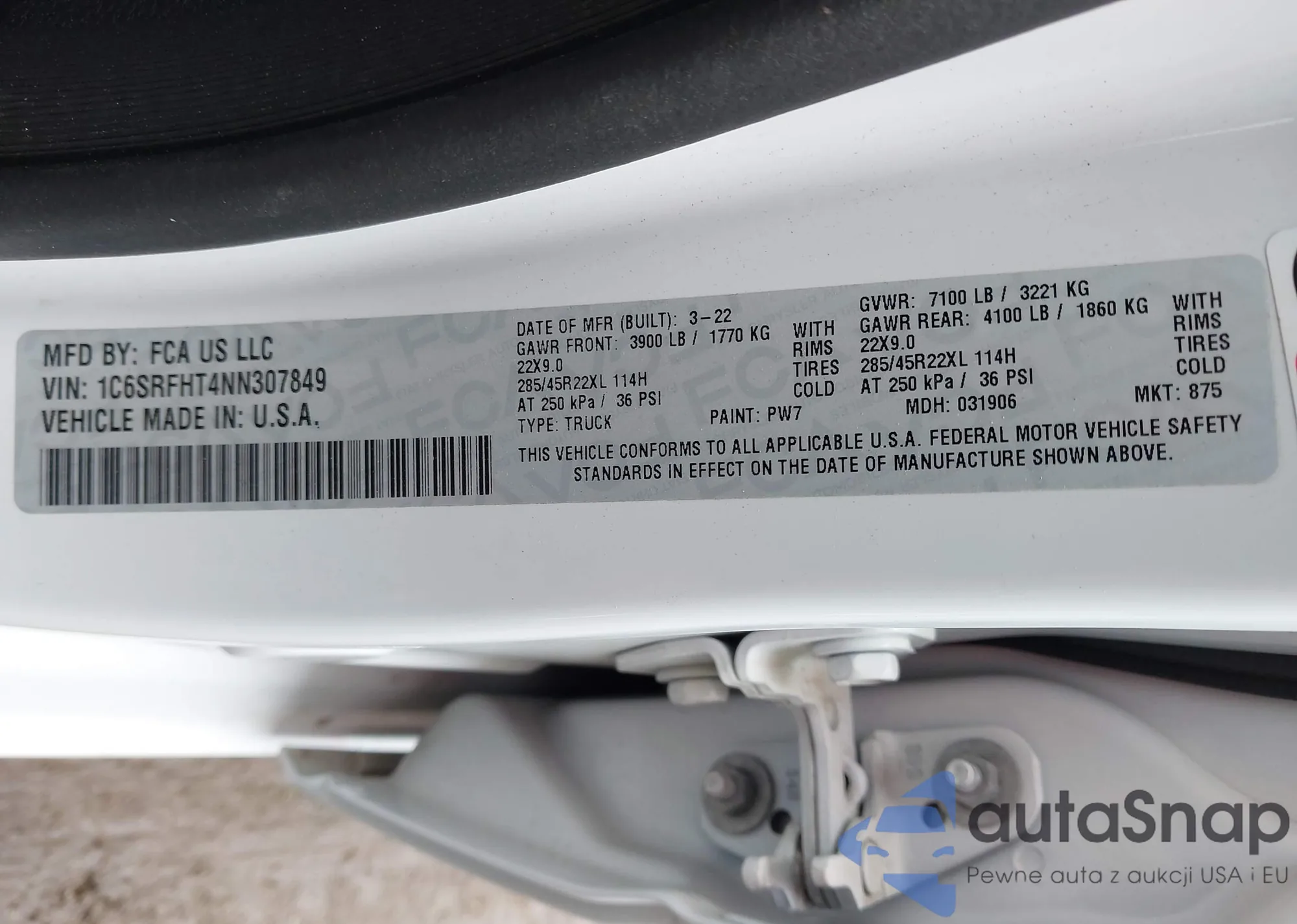 VIN: 1C6SRFHT4NN307849