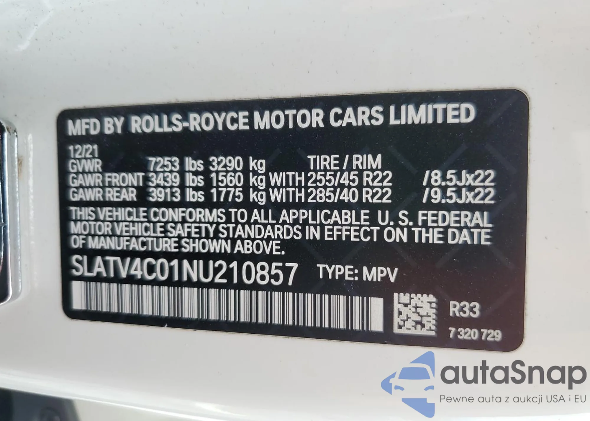 Rolls-Royce Cullinan 2022 – История автомобиля (продан на COPART)