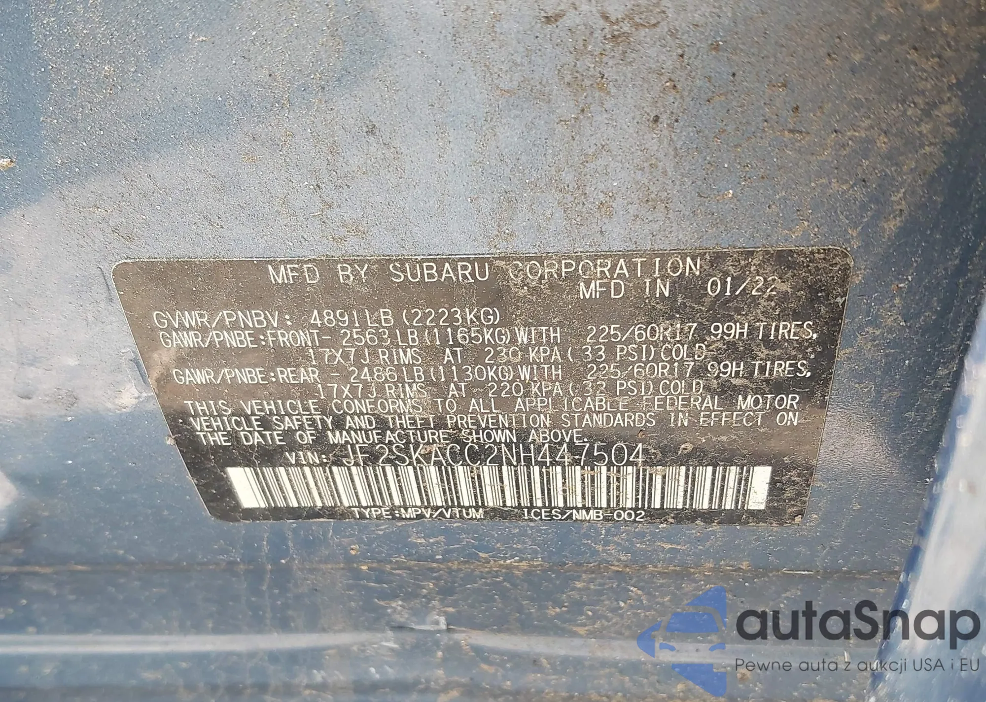 VIN: JF2SKACC2NH447504