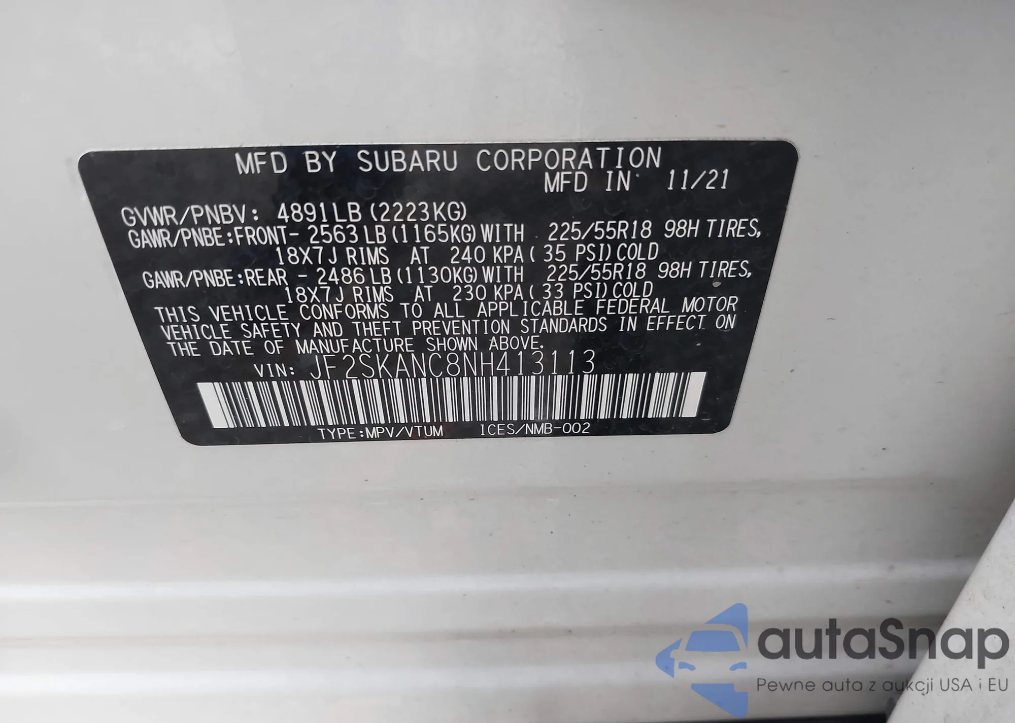 VIN: JF2SKANC8NH413113