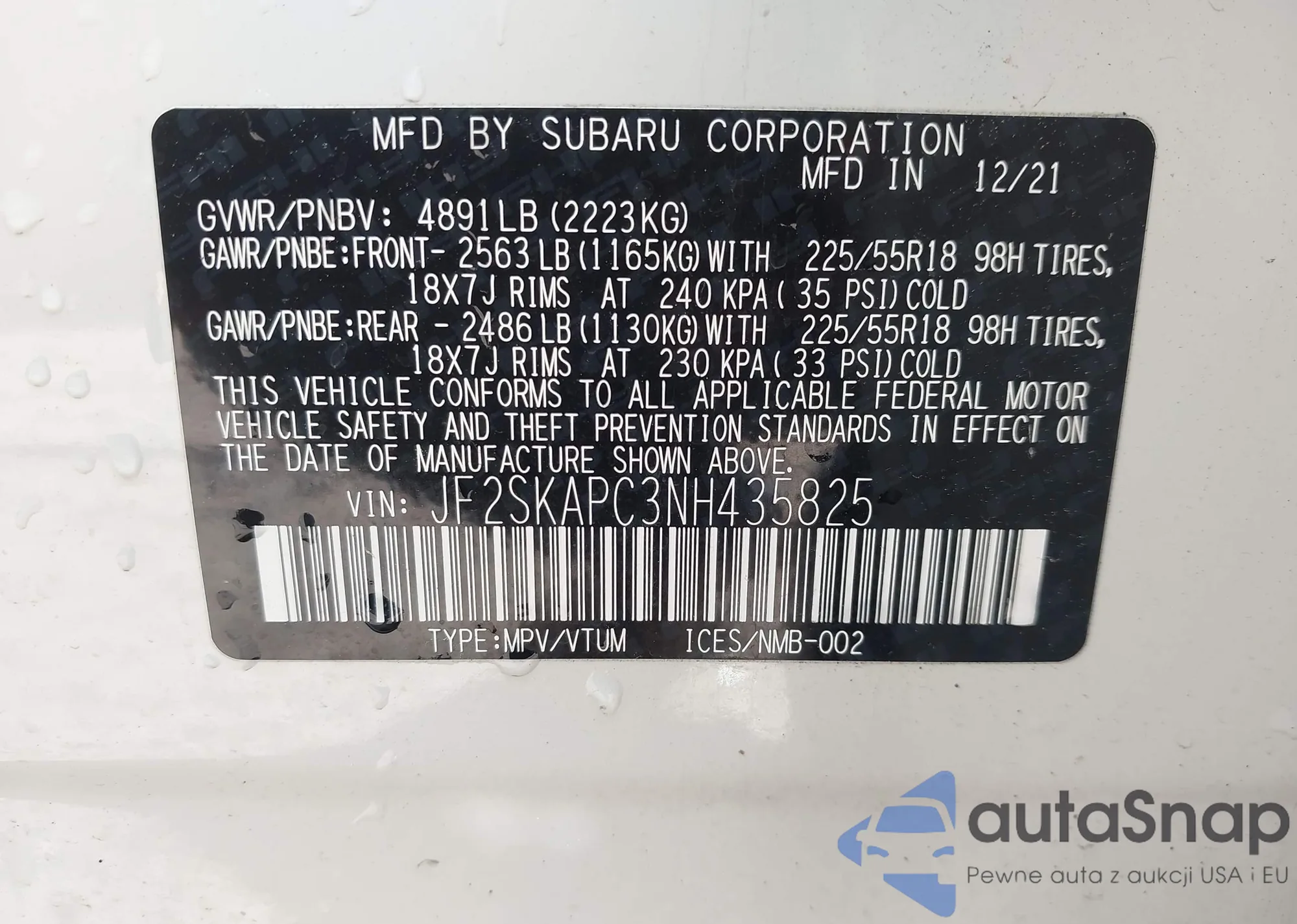VIN: JF2SKAPC3NH435825