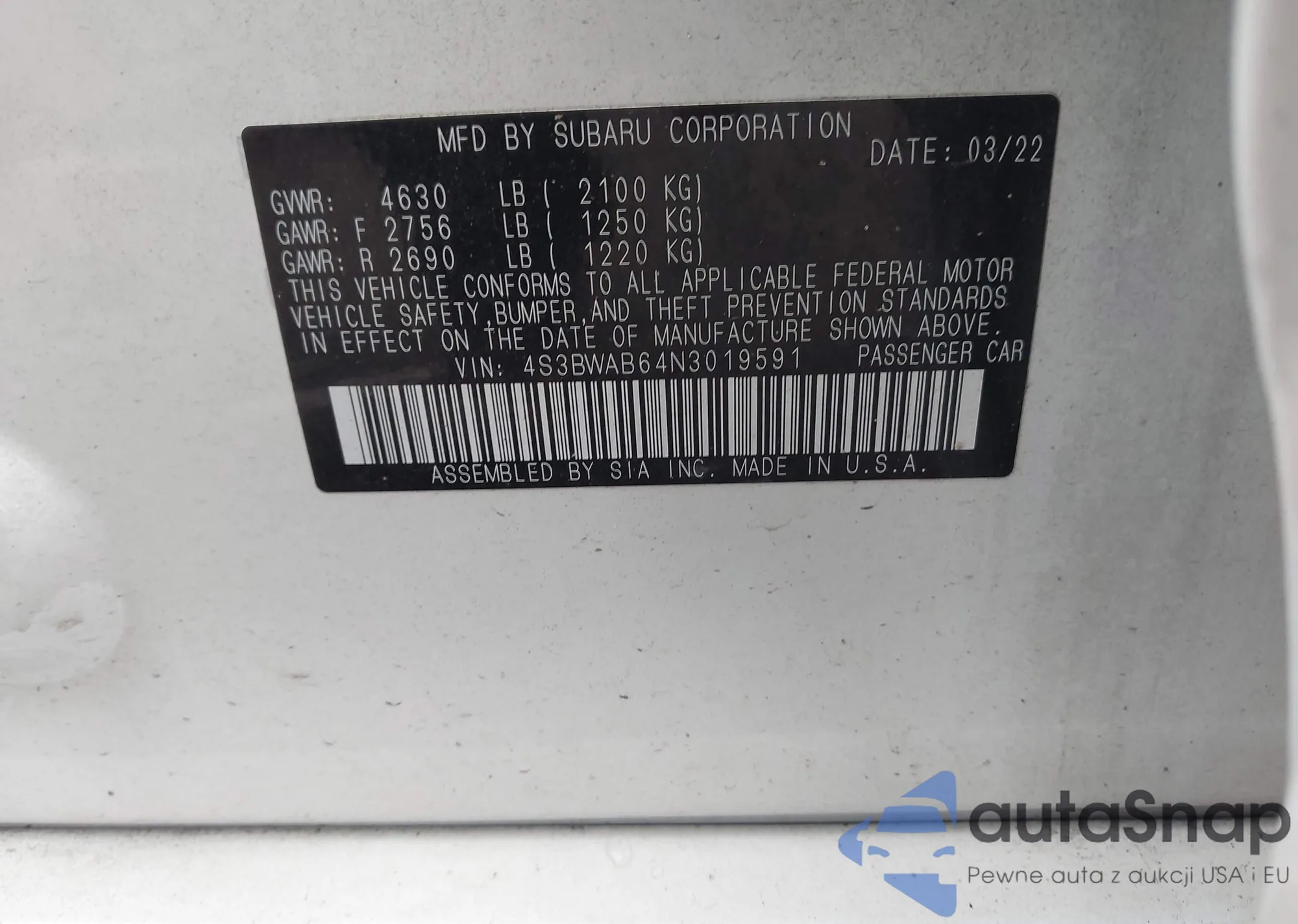 VIN: 4S3BWAB64N3019591