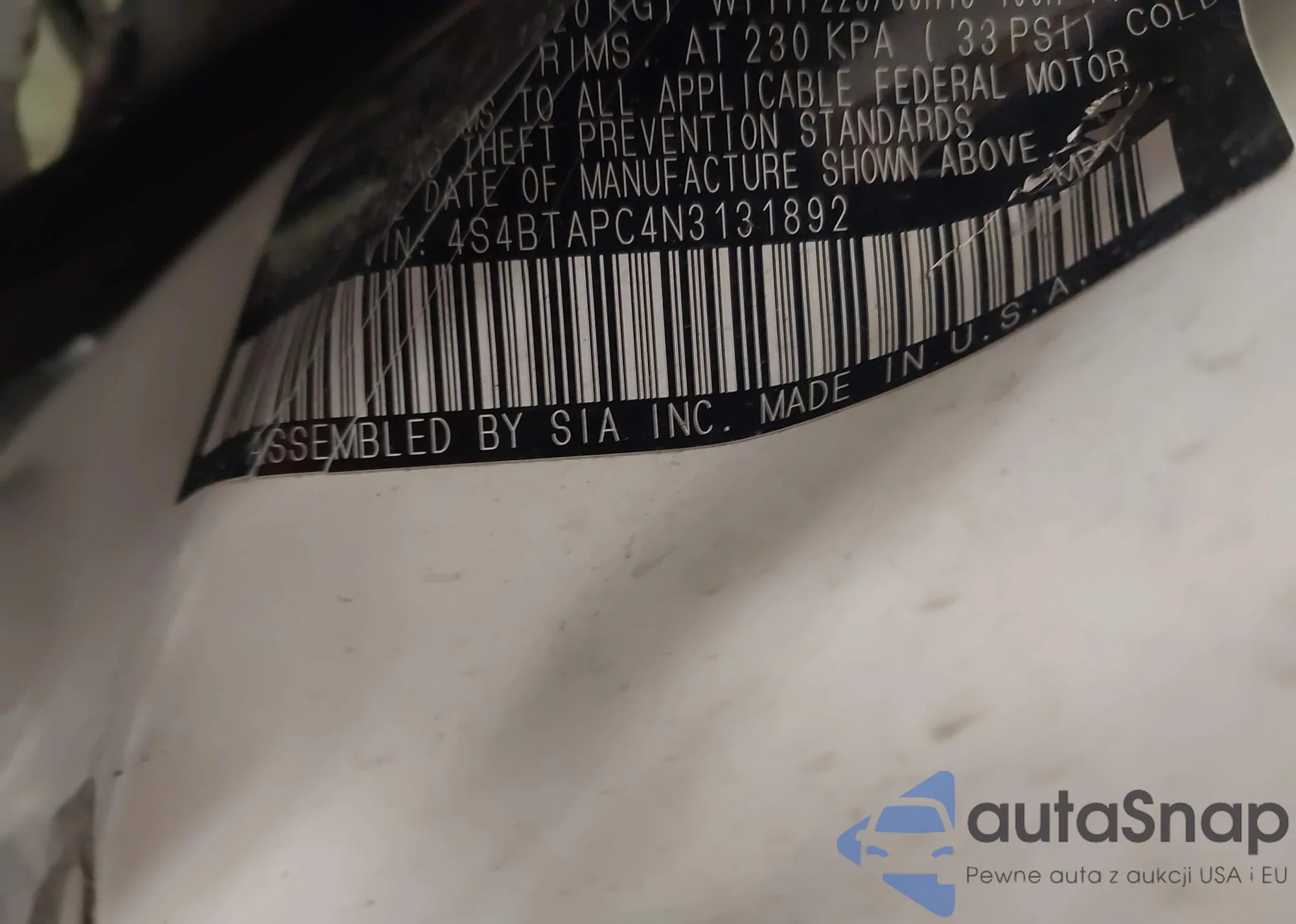 • VIN: 4S4BTAPC4N3131892