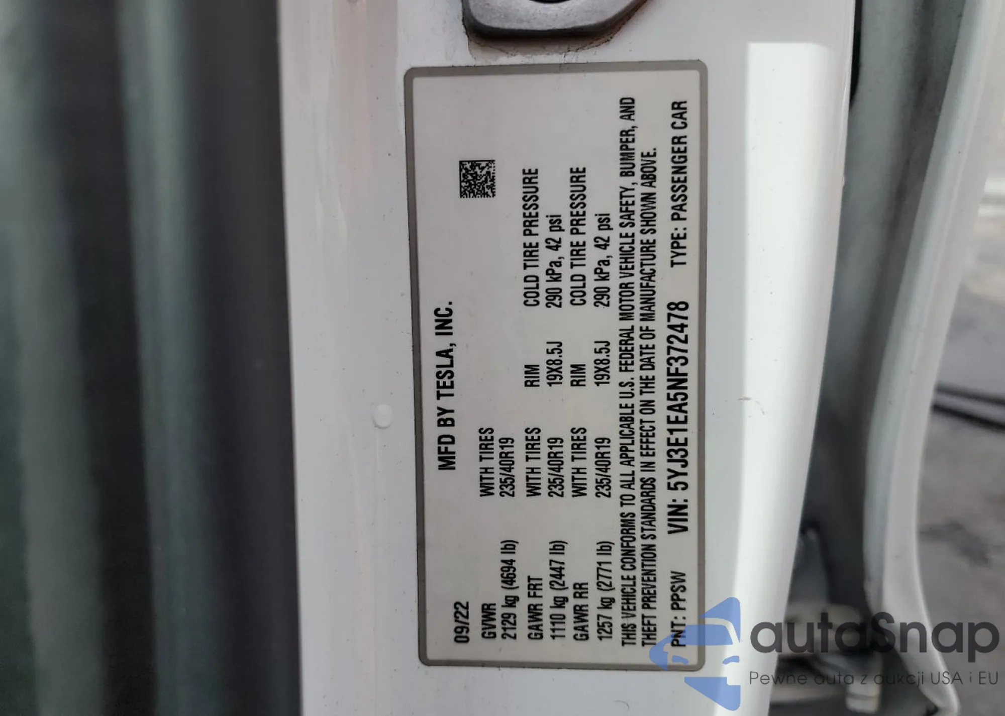 VIN: 5YJ3E1EA5NF372478