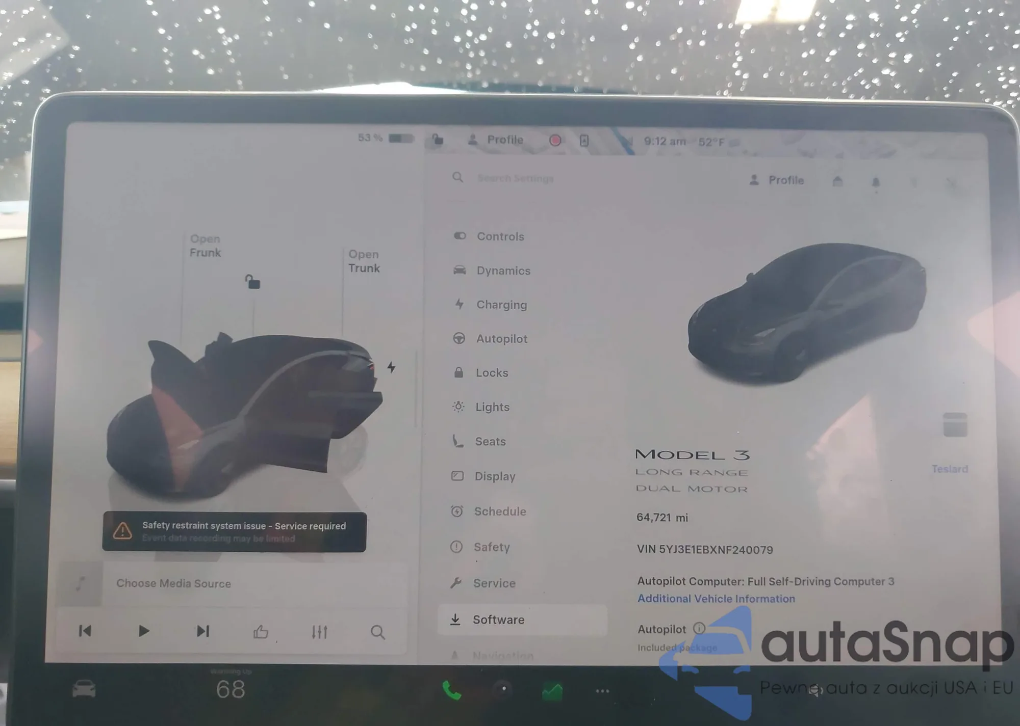 Автомобиль Tesla Model 3 2022 (VIN 5YJ3E1EBXNF240079) имеет документы, препятствующие регистрации. Могут возникнуть сложности при экспорте и регистрации. Обратитесь к экспертам AutaSnap для поиска альтернатив.