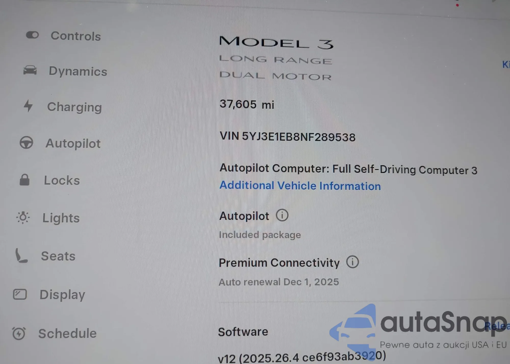 VIN: 5YJ3E1EB8NF289538