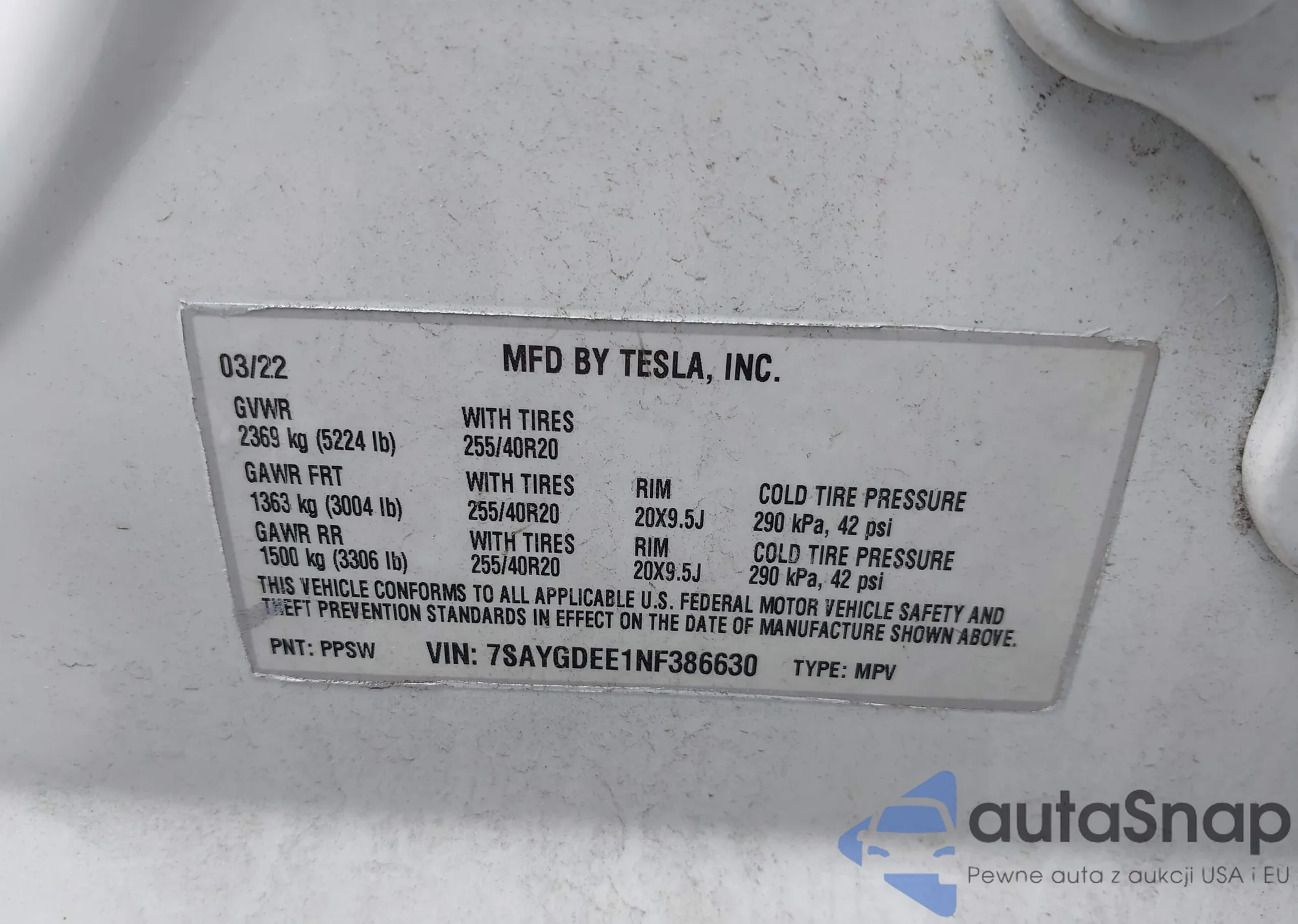 Автомобиль Tesla Model Y 2022 (VIN 7SAYGDEE1NF386630) ранее не участвовал в торгах. Документы чистые, пробег соответствует или ниже среднего по рынку. Продаётся страховой компанией — рекомендуем покупку. Доставка в порт займет около 6–8 недель.