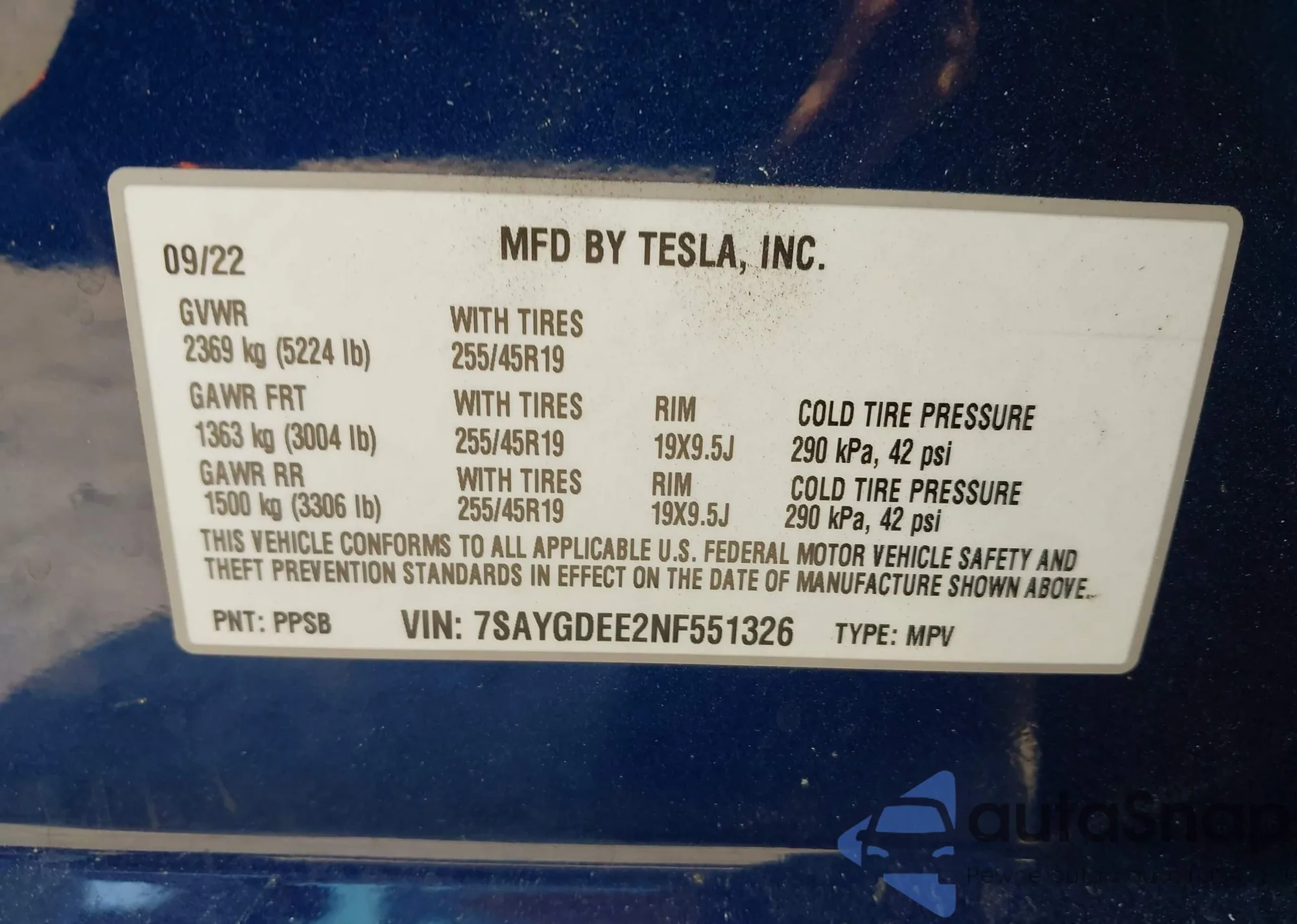 VIN: 7SAYGDEE2NF551326