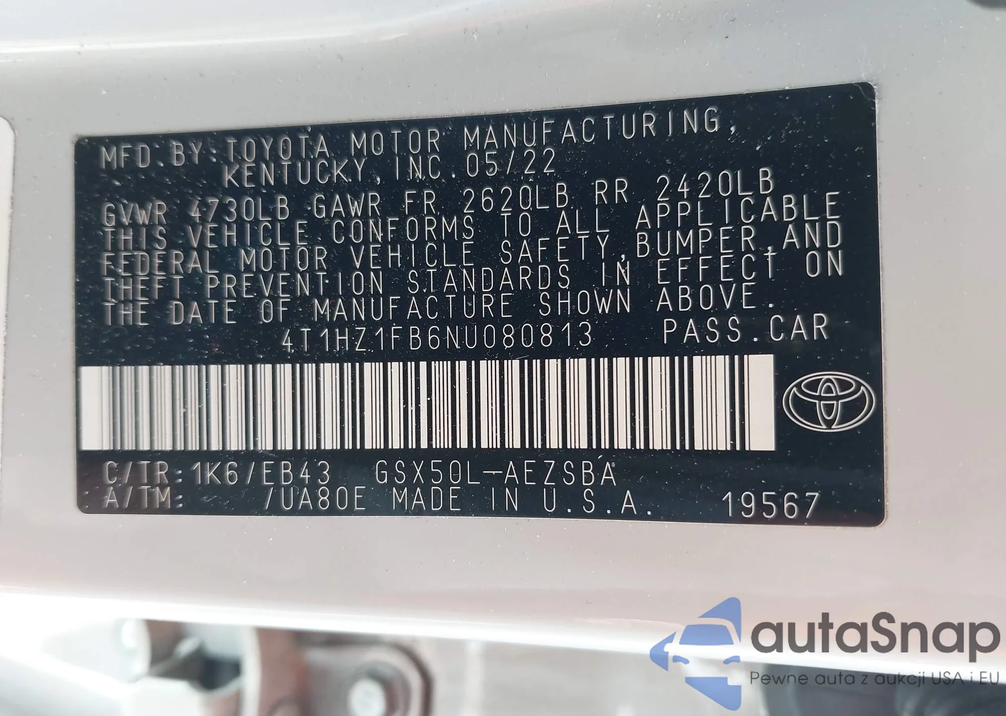 VIN: 4T1HZ1FB6NU080813
