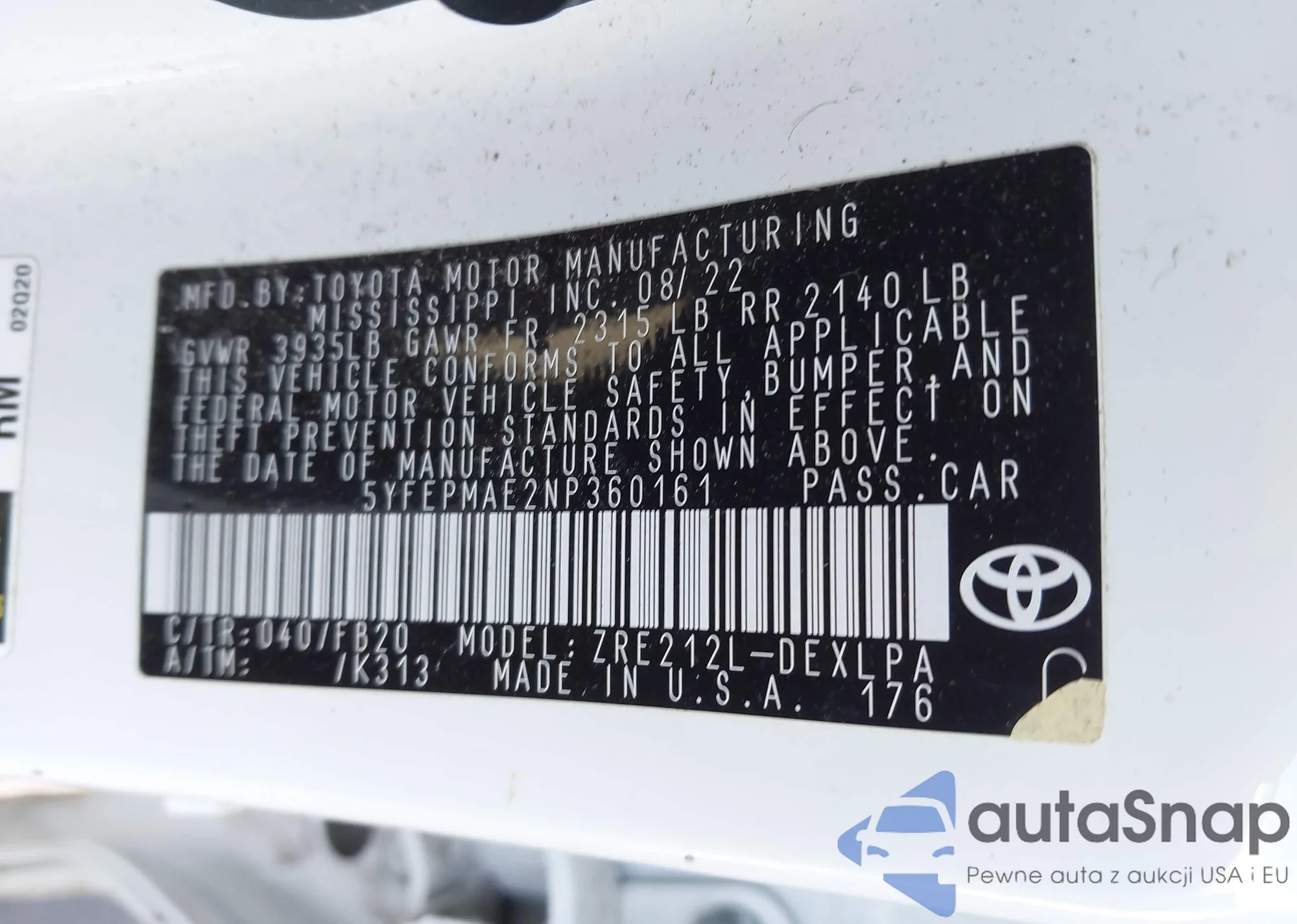 VIN: 5YFEPMAE2NP360161