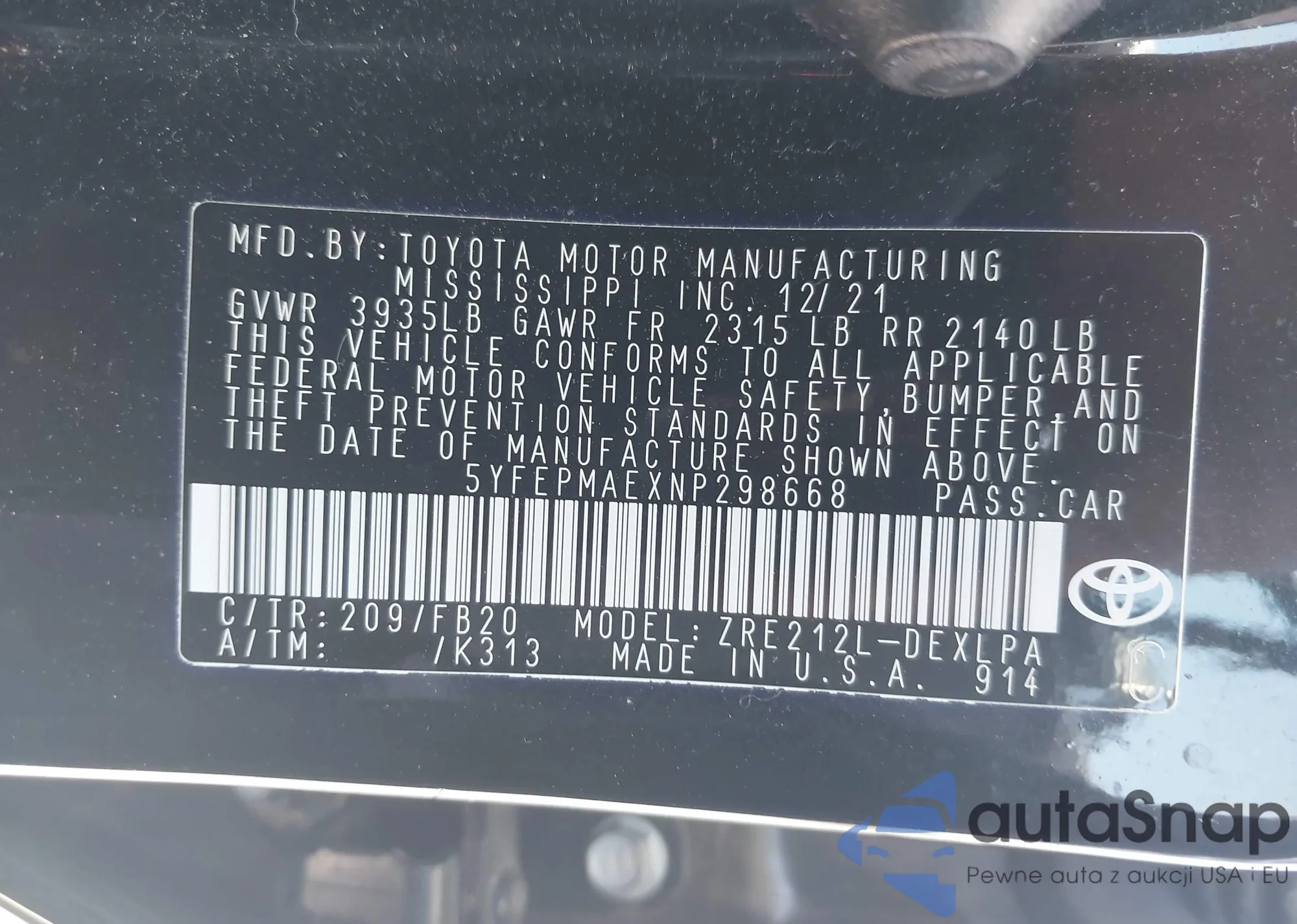 VIN: 5YFEPMAEXNP298668