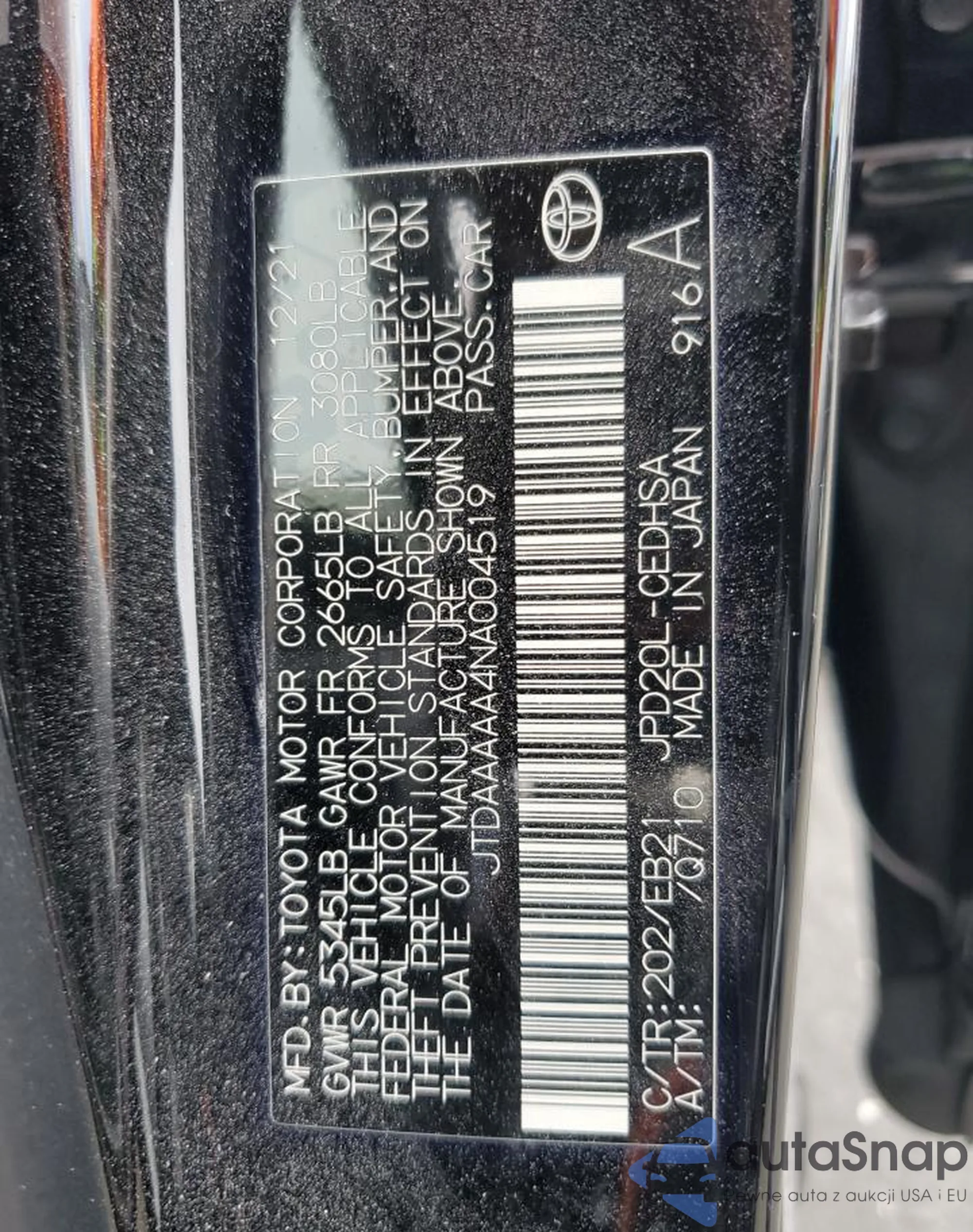VIN: JTDAAAAA4NA004519