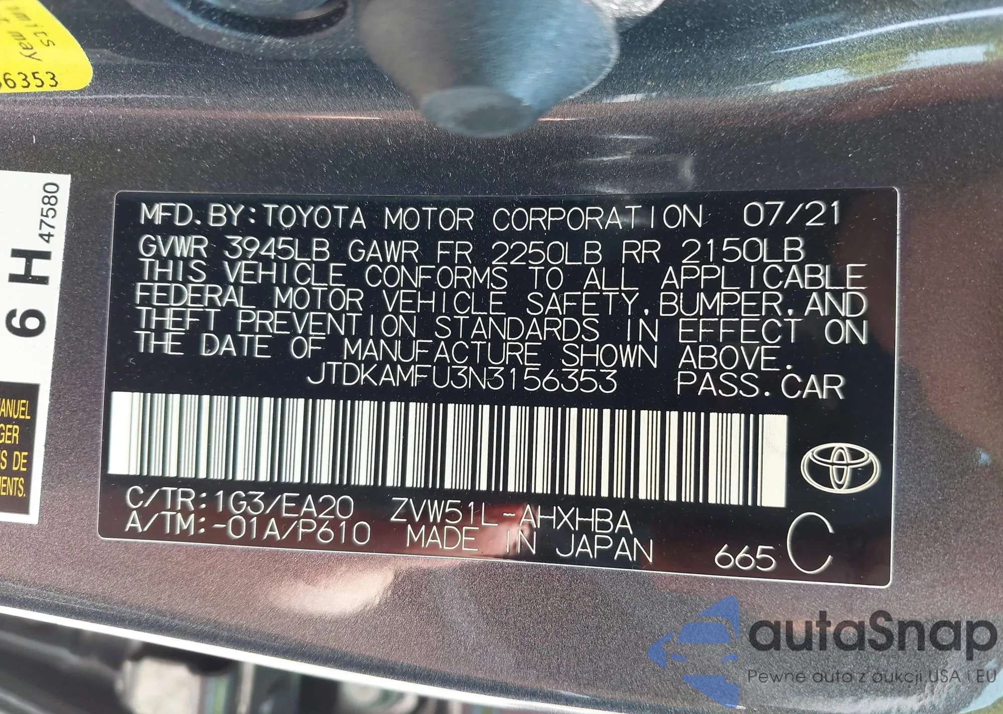 VIN: JTDKAMFU3N3156353