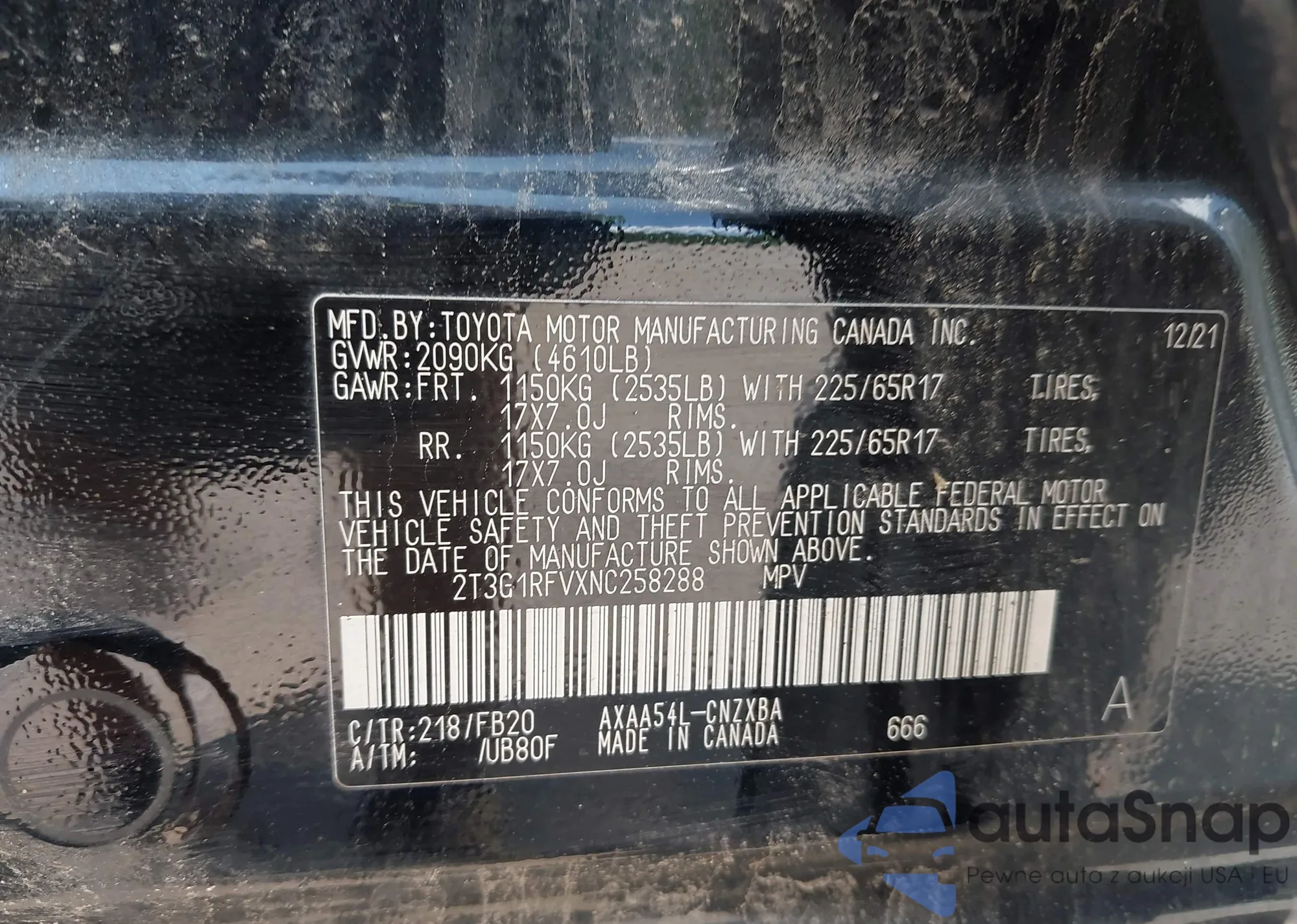 VIN: 2T3G1RFVXNC258288