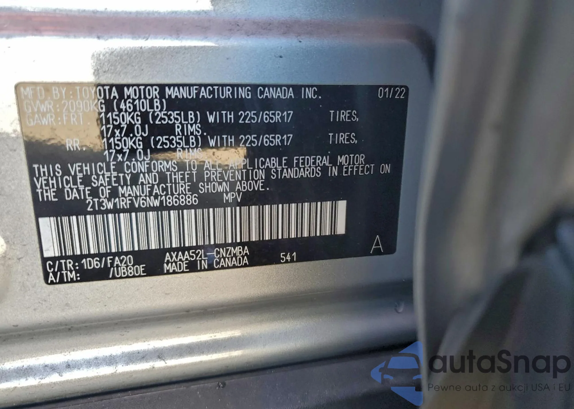 • VIN: 2T3W1RFV6NW186886