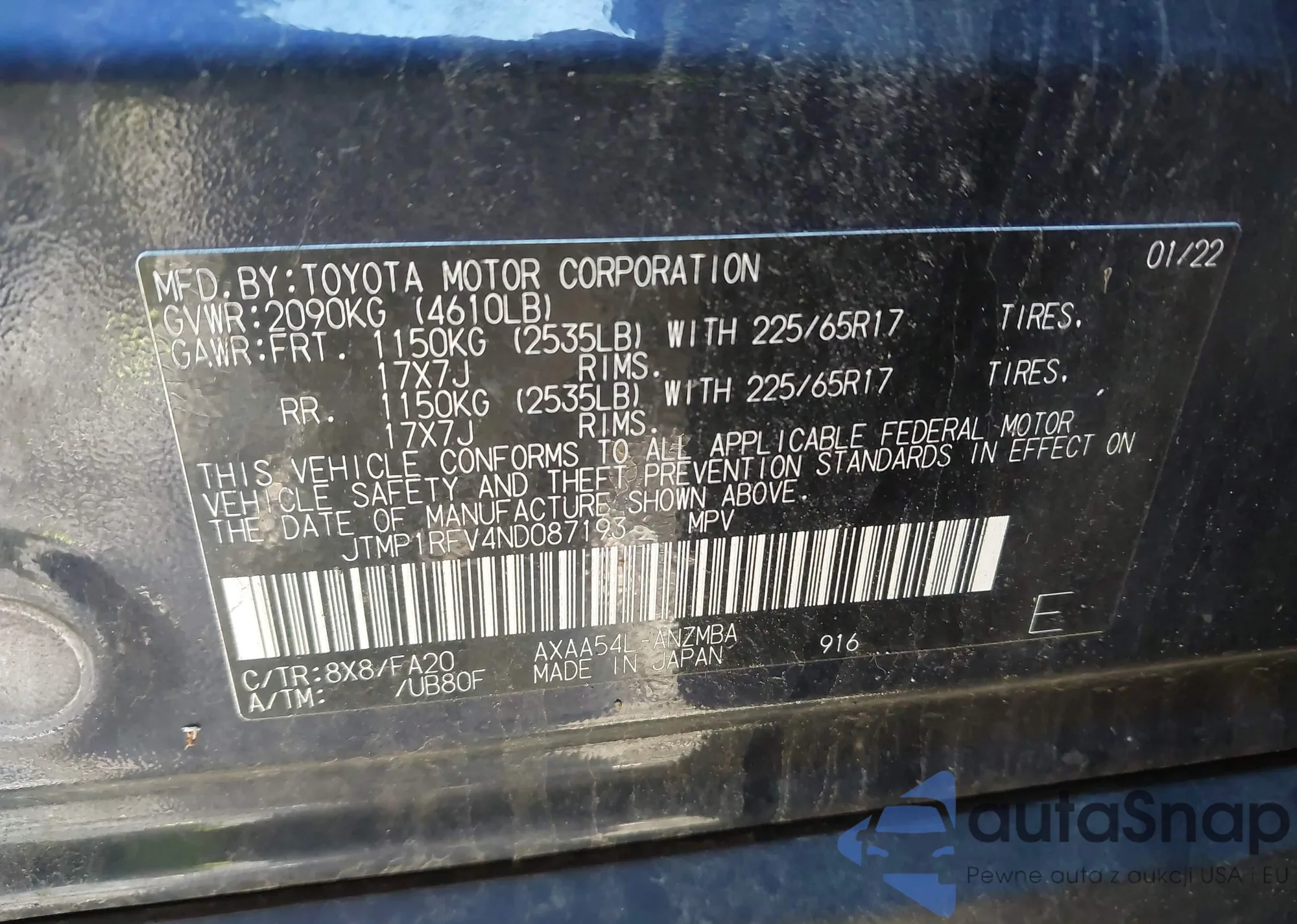 VIN: JTMP1RFV4ND087193