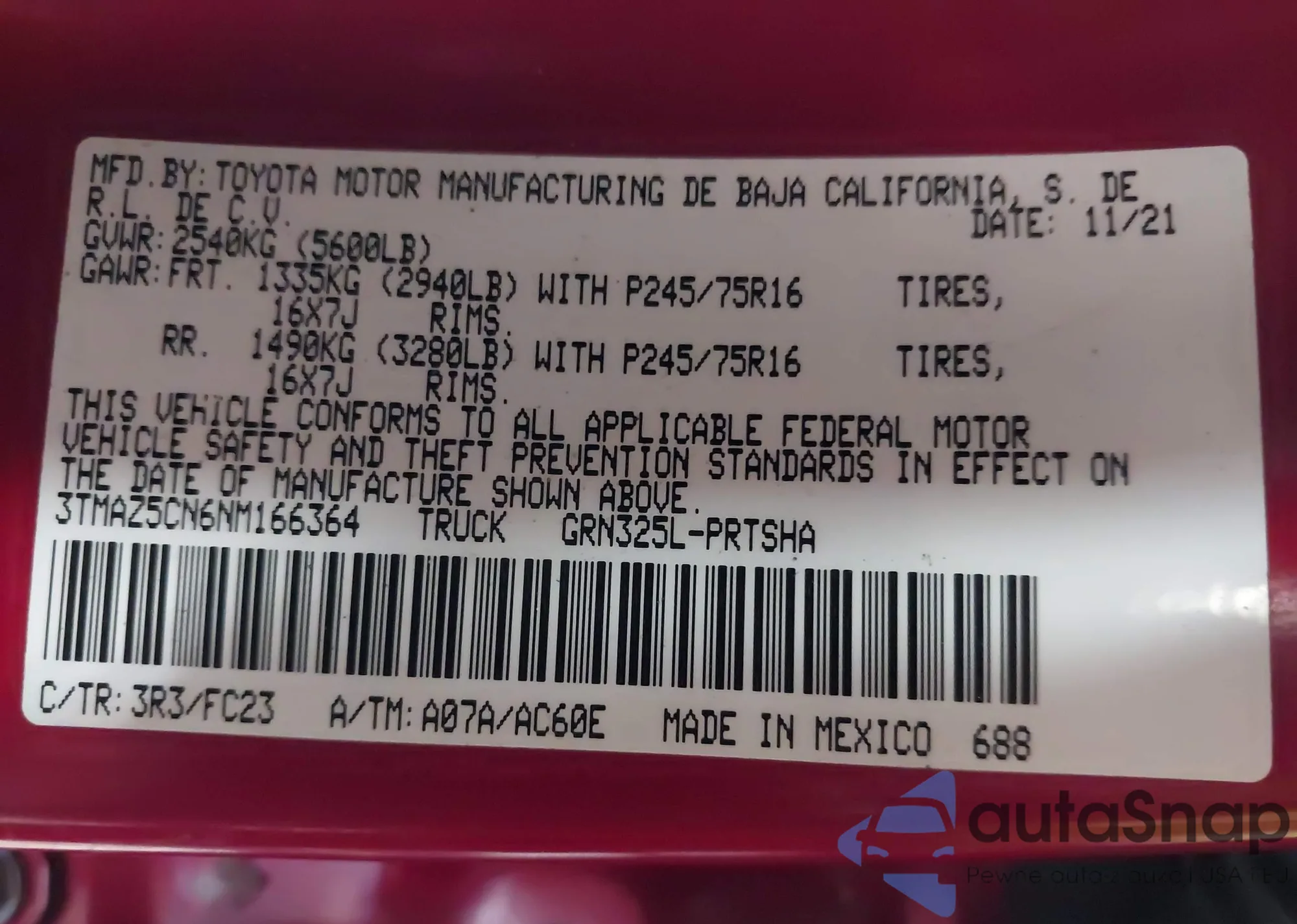 VIN: 3TMAZ5CN6NM166364