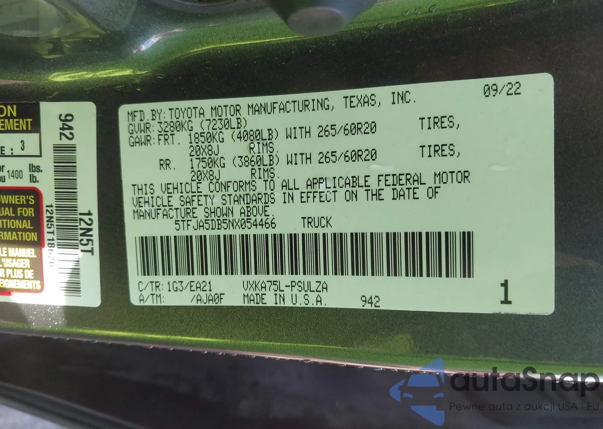 Автомобиль Toyota Tundra 2022 (VIN 5TFJA5DB5NX054466) ранее не участвовал в торгах. Документы чистые, пробег соответствует или ниже среднего по рынку. Продаётся страховой компанией — рекомендуем покупку. Доставка в порт займет около 6–8 недель.