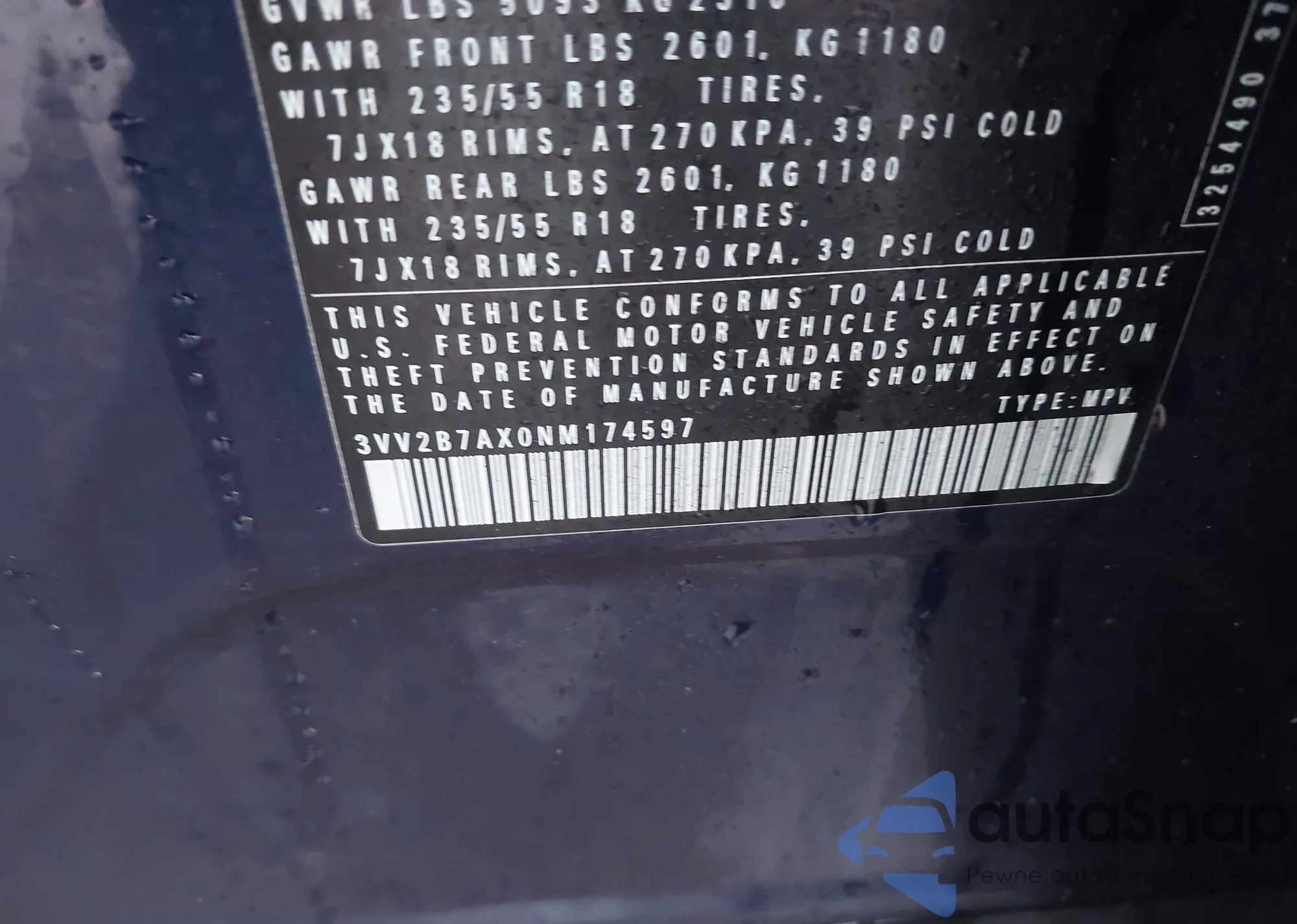 VIN: 3VV2B7AX0NM174597