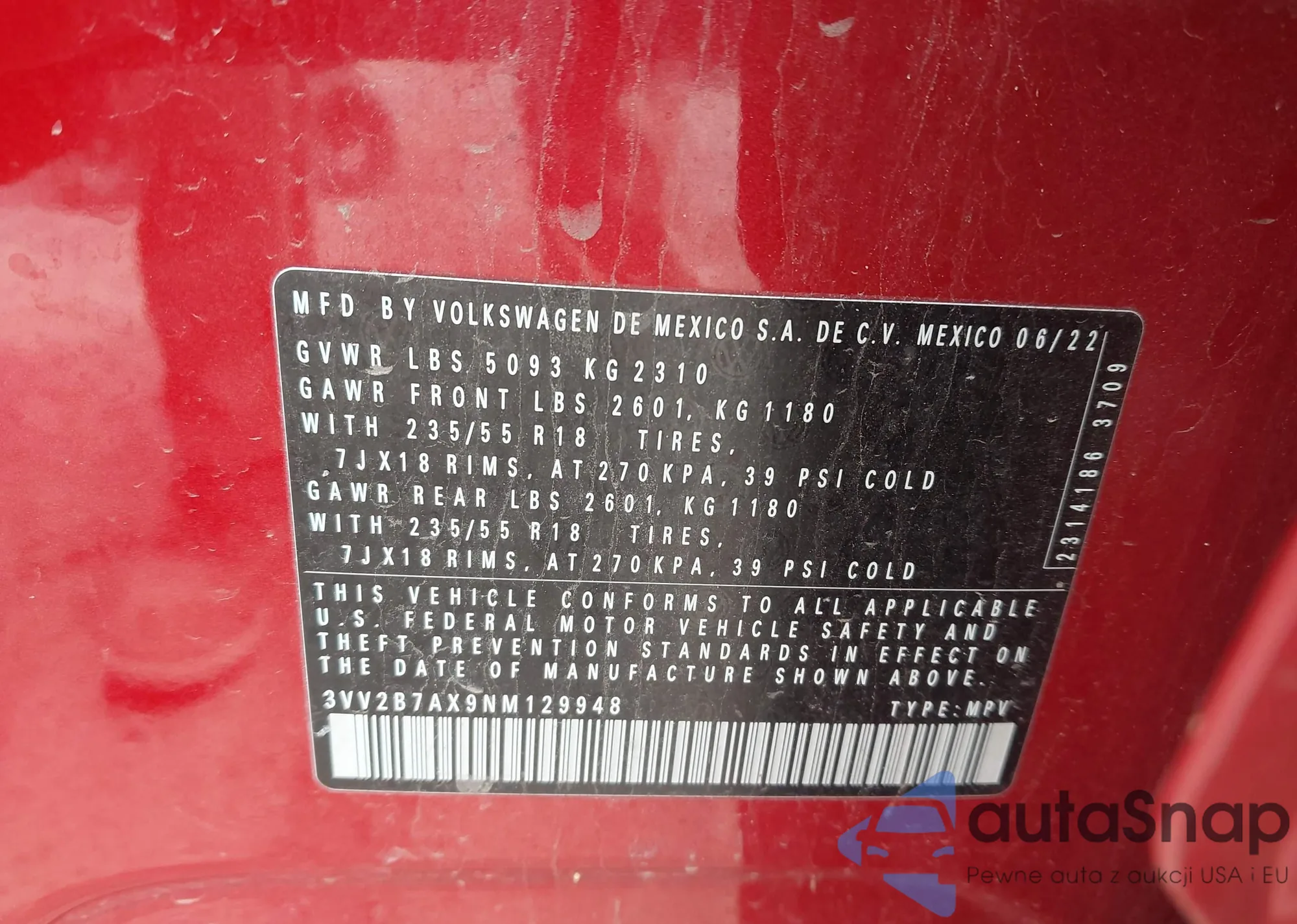 VIN: 3VV2B7AX9NM129948