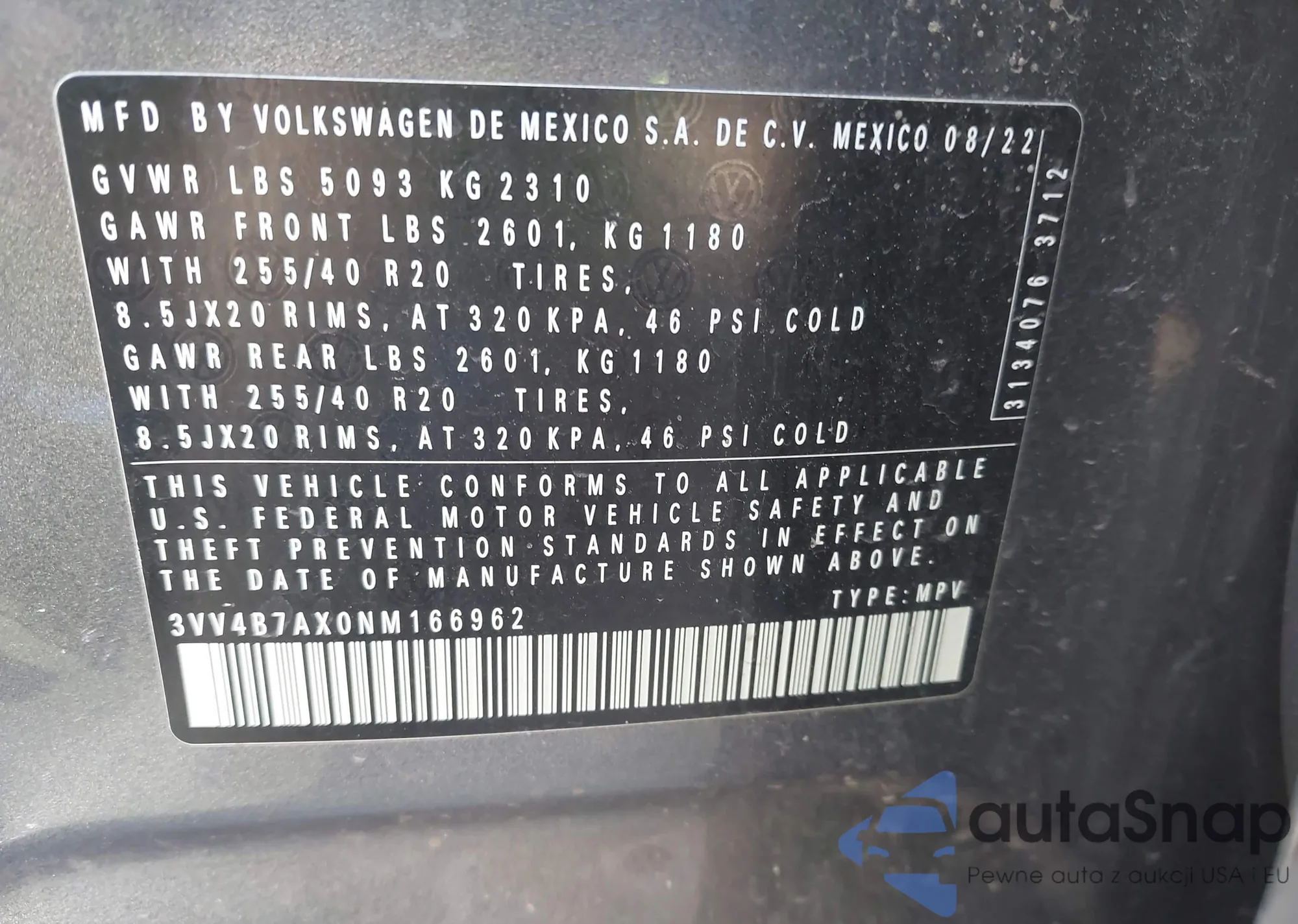 VIN: 3VV4B7AX0NM166962