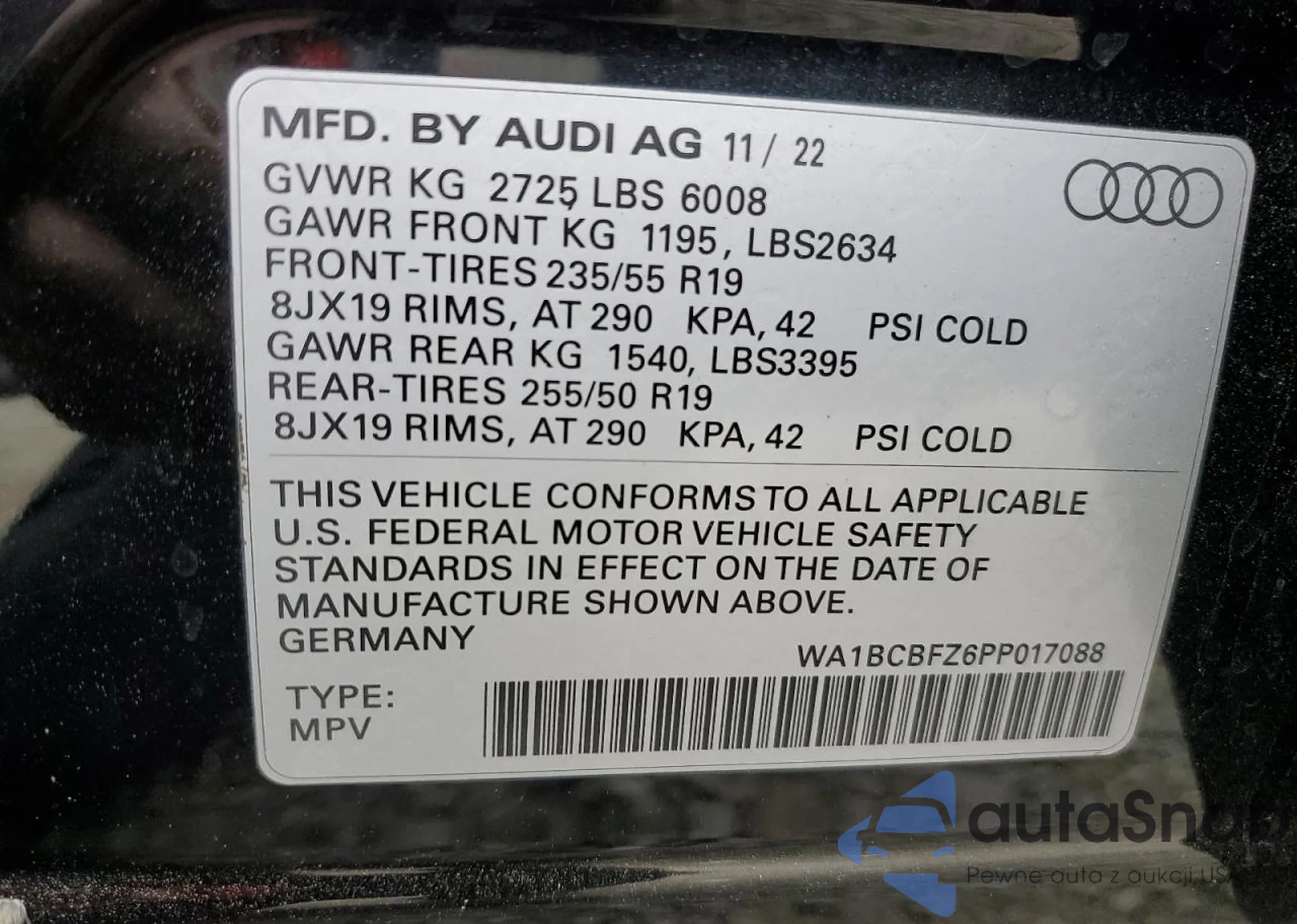 VIN: WA1BCBFZ6PP017088