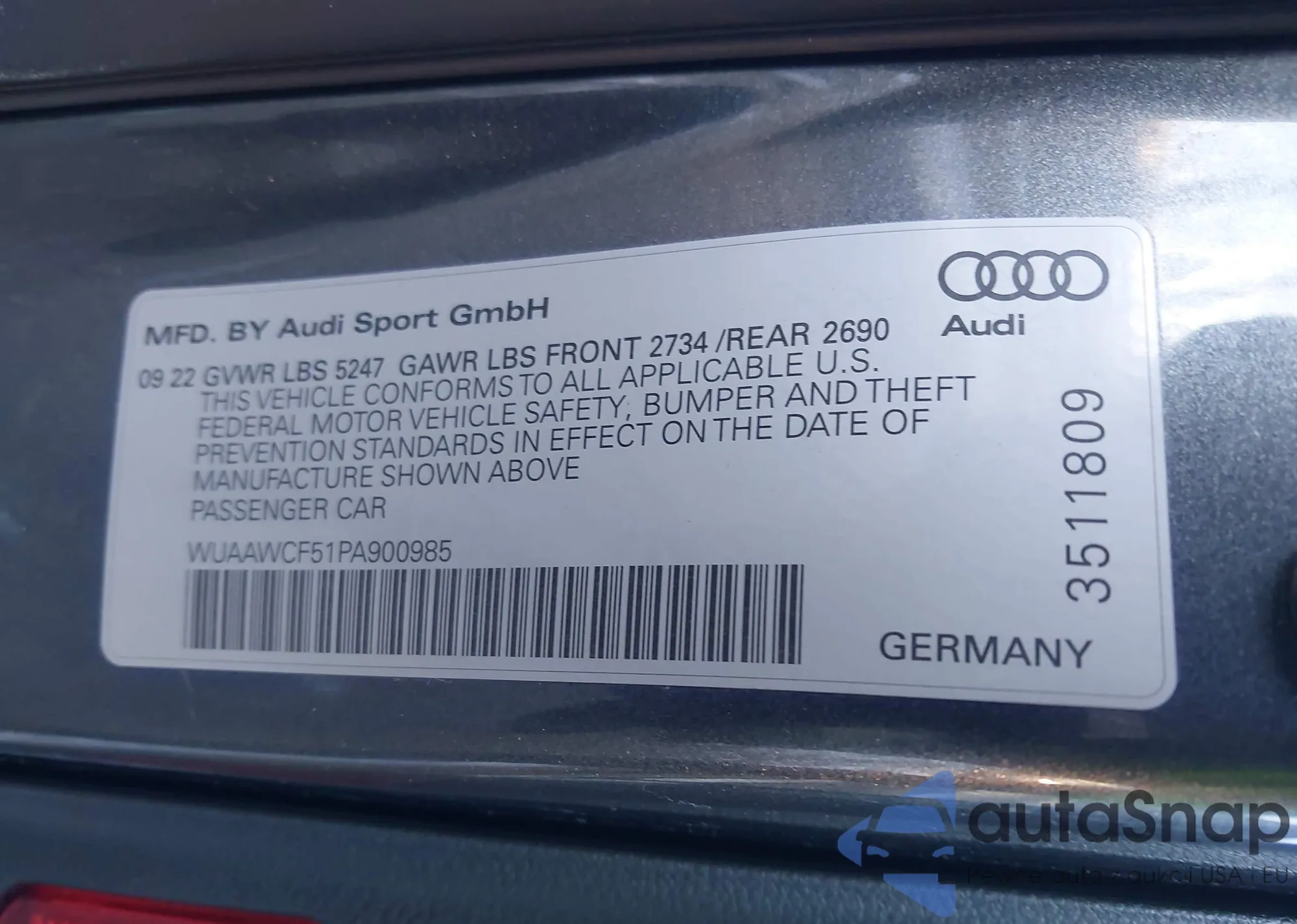 • VIN: WUAAWCF51PA900985
