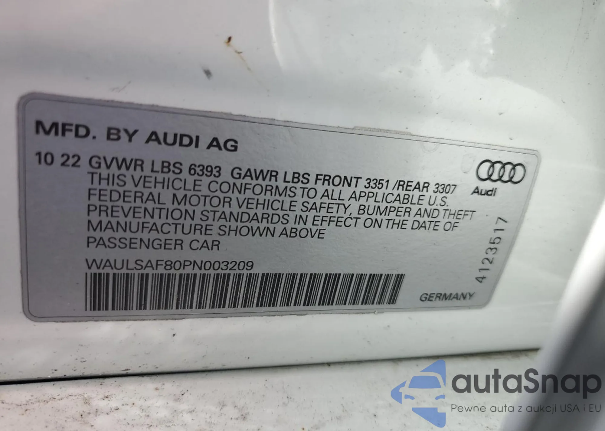 VIN: WAULSAF80PN003209