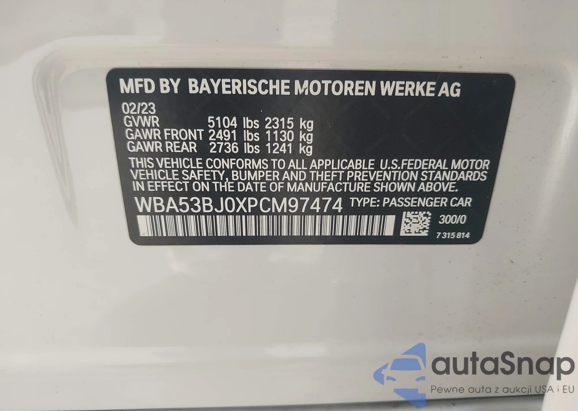 VIN: WBA53BJ0XPCM97474