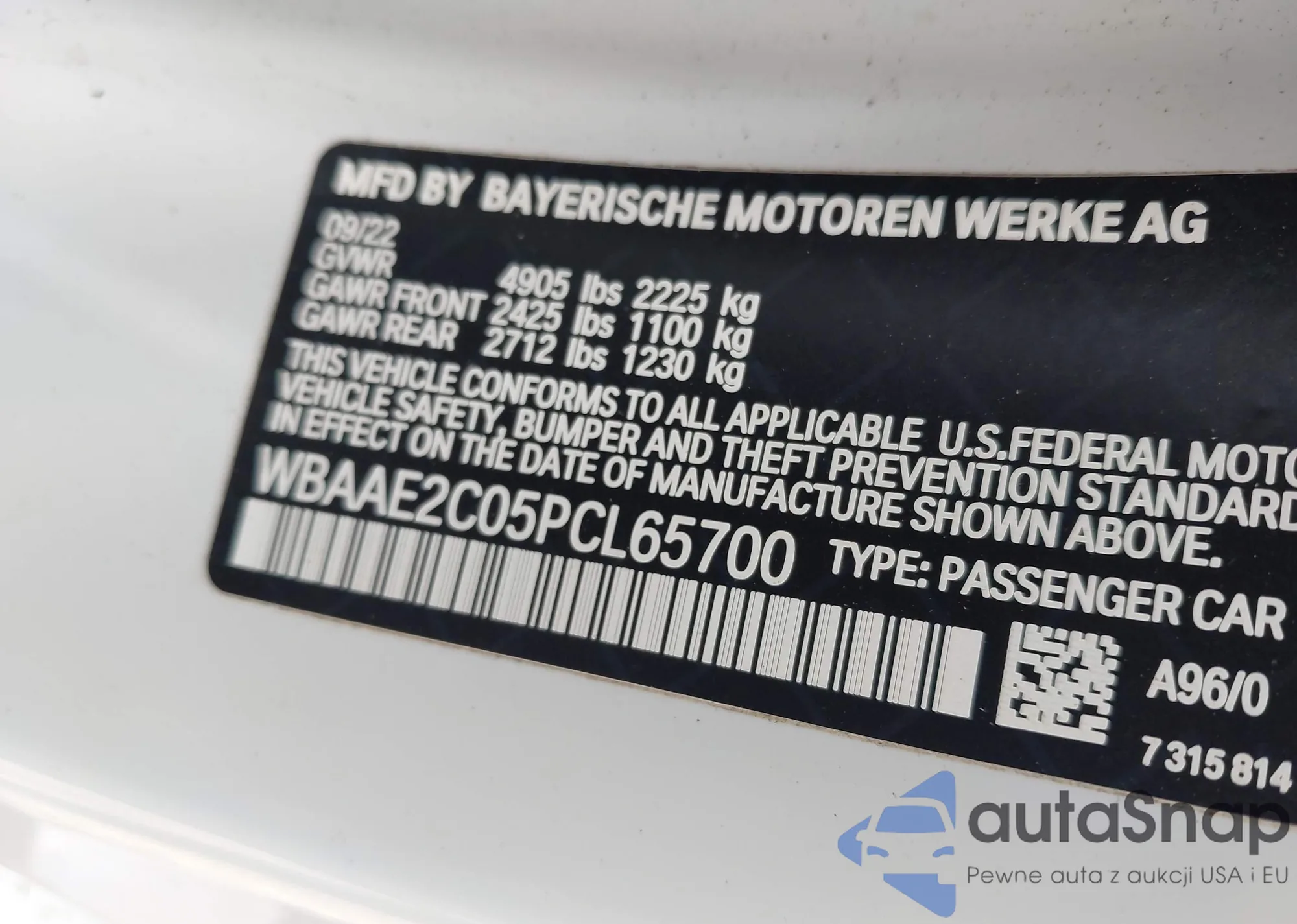 VIN: WBAAE2C05PCL65700