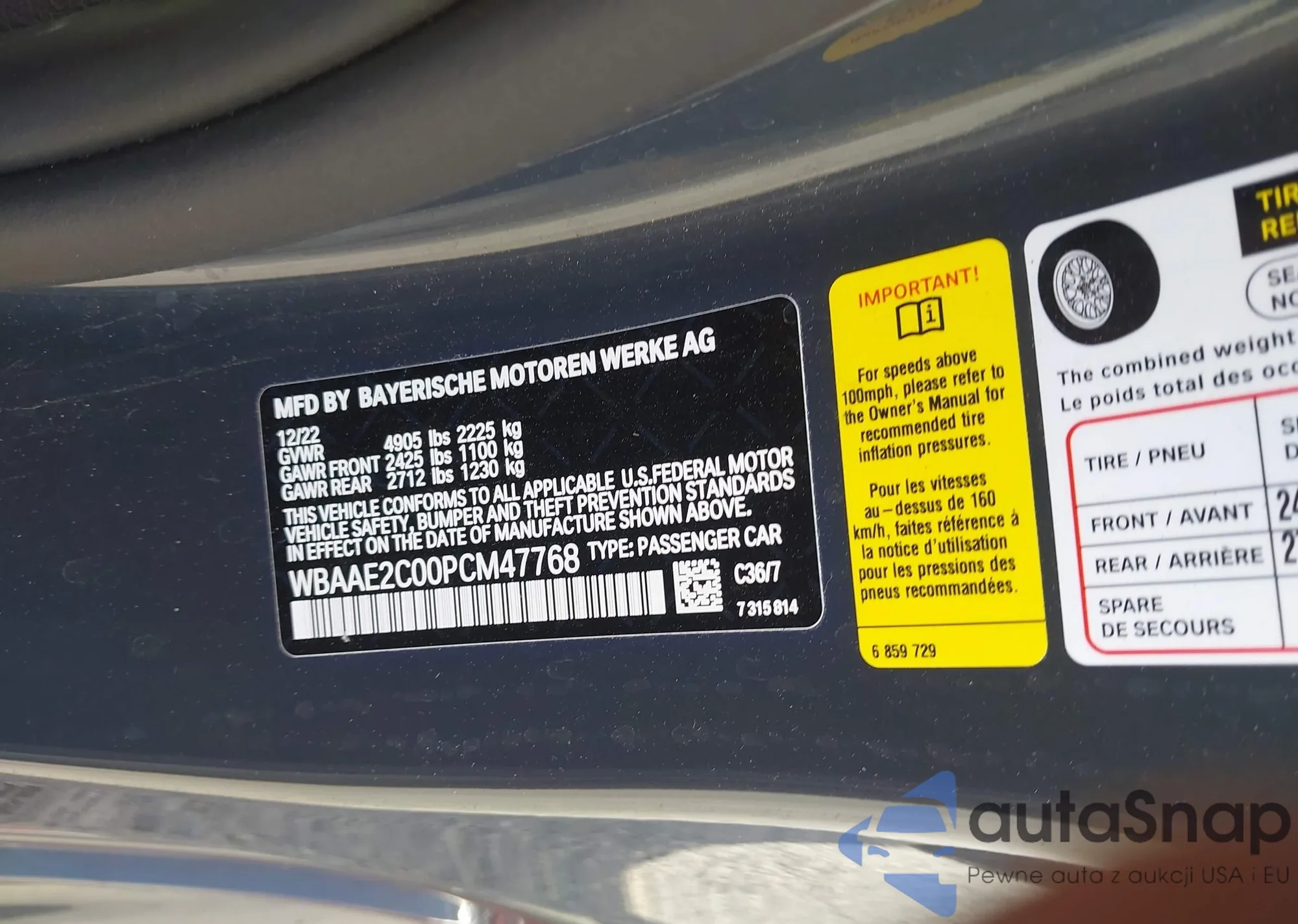 VIN: WBAAE2C00PCM47768