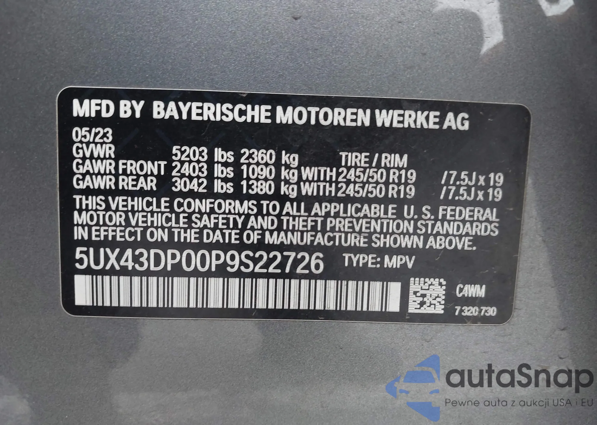 VIN: 5UX43DP00P9S22726