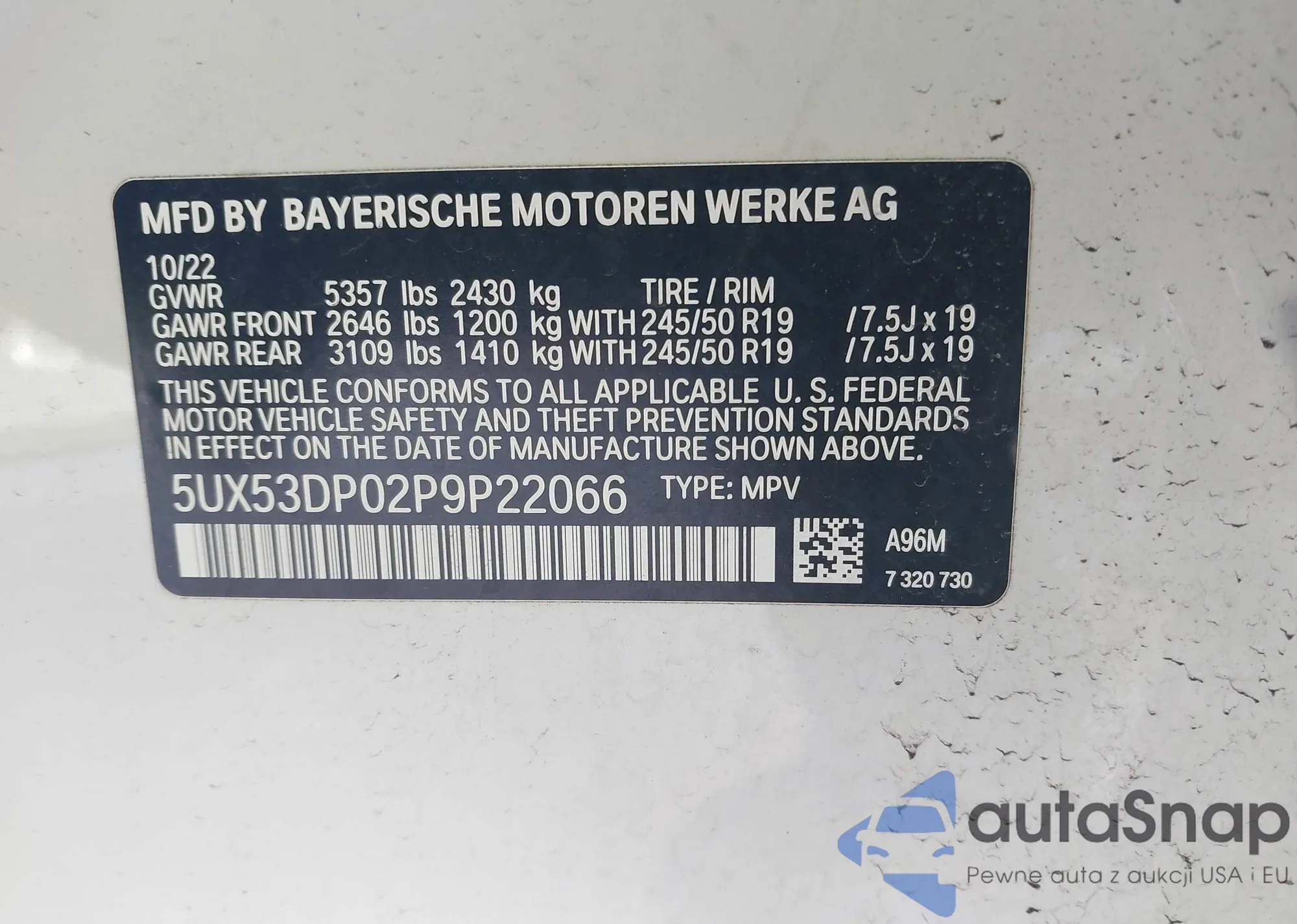 VIN: 5UX53DP02P9P22066