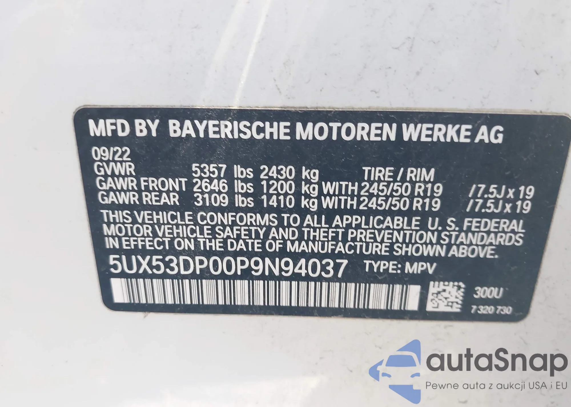 • VIN: 5UX53DP00P9N94037