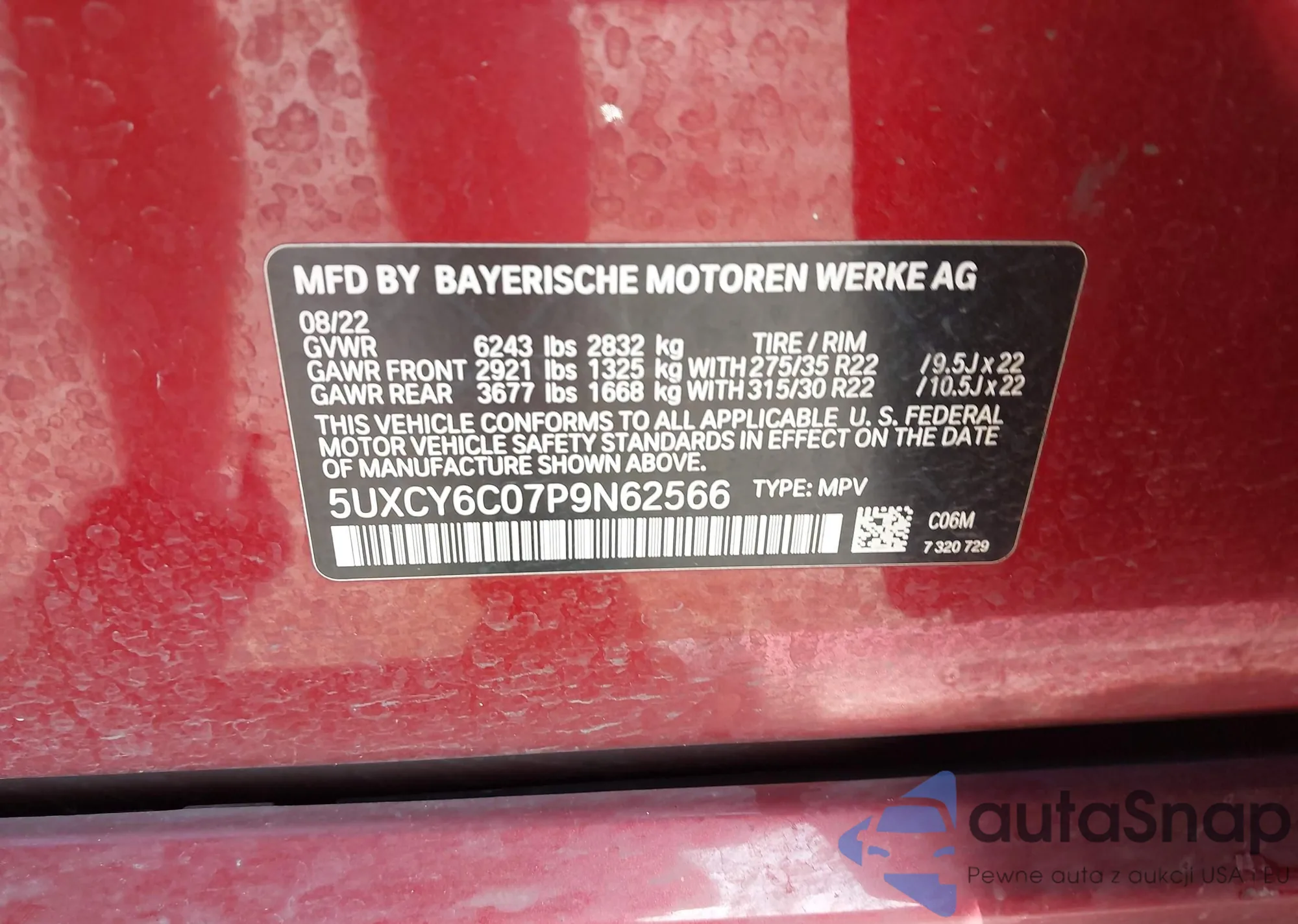 • VIN: 5UXCY6C07P9N62566