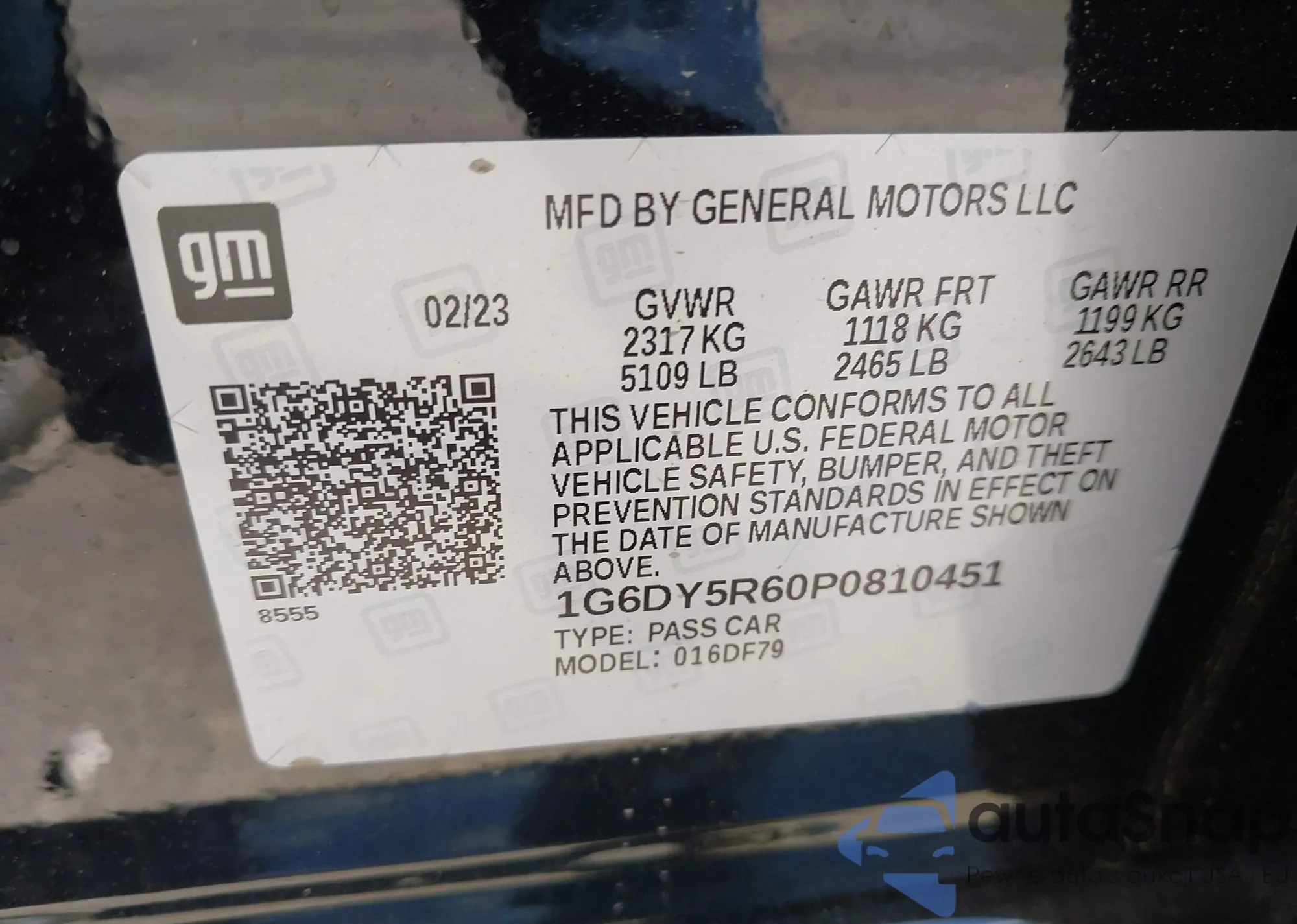 • VIN: 1G6DY5R60P0810451