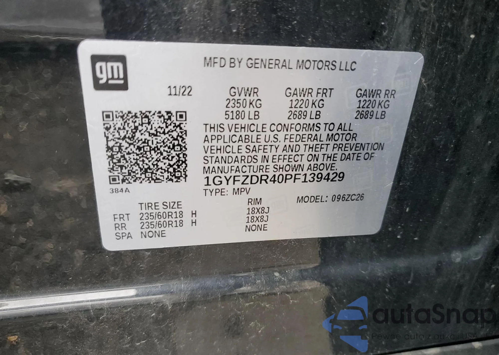 VIN: 1GYFZDR40PF139429