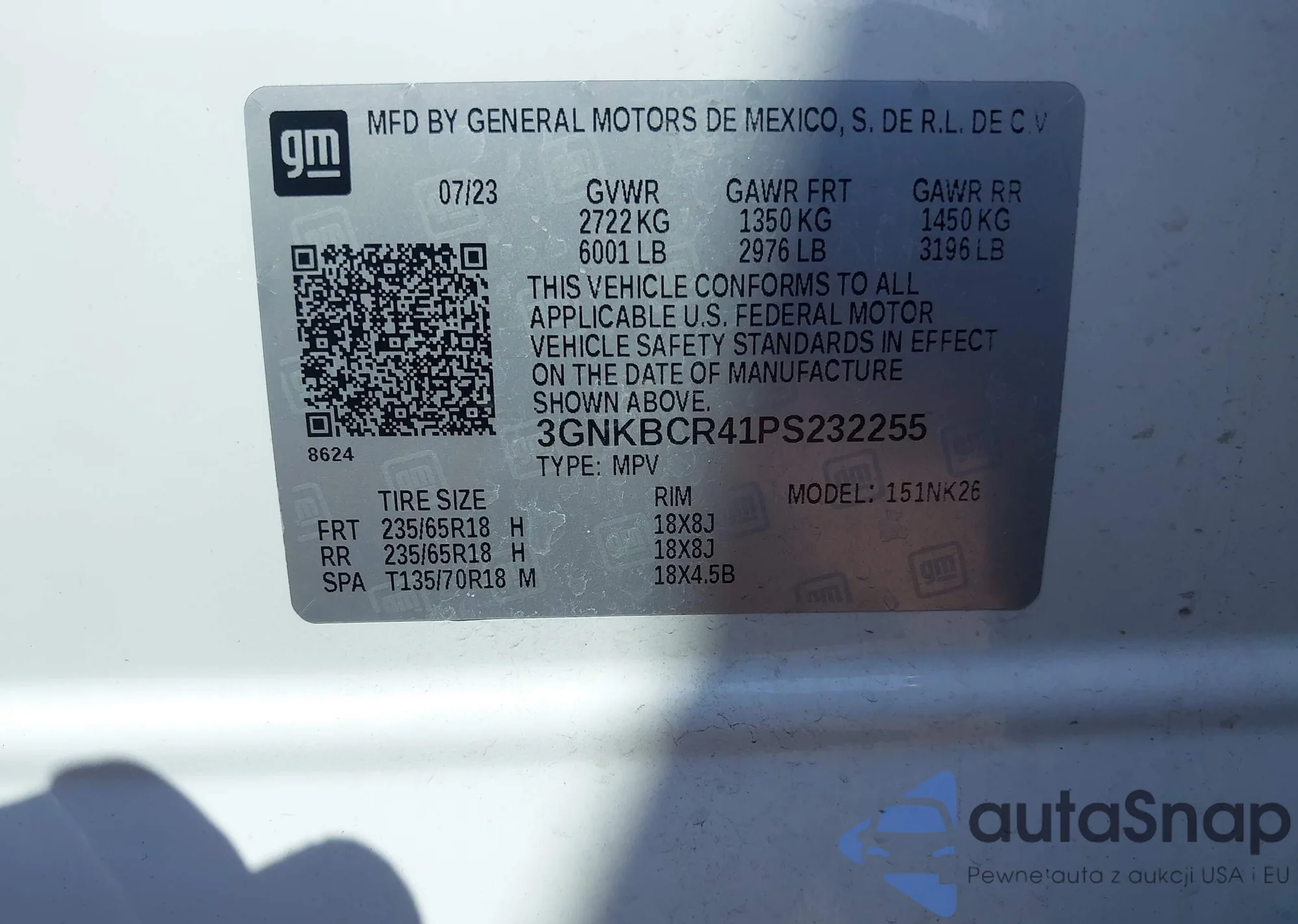 VIN: 3GNKBCR41PS232255