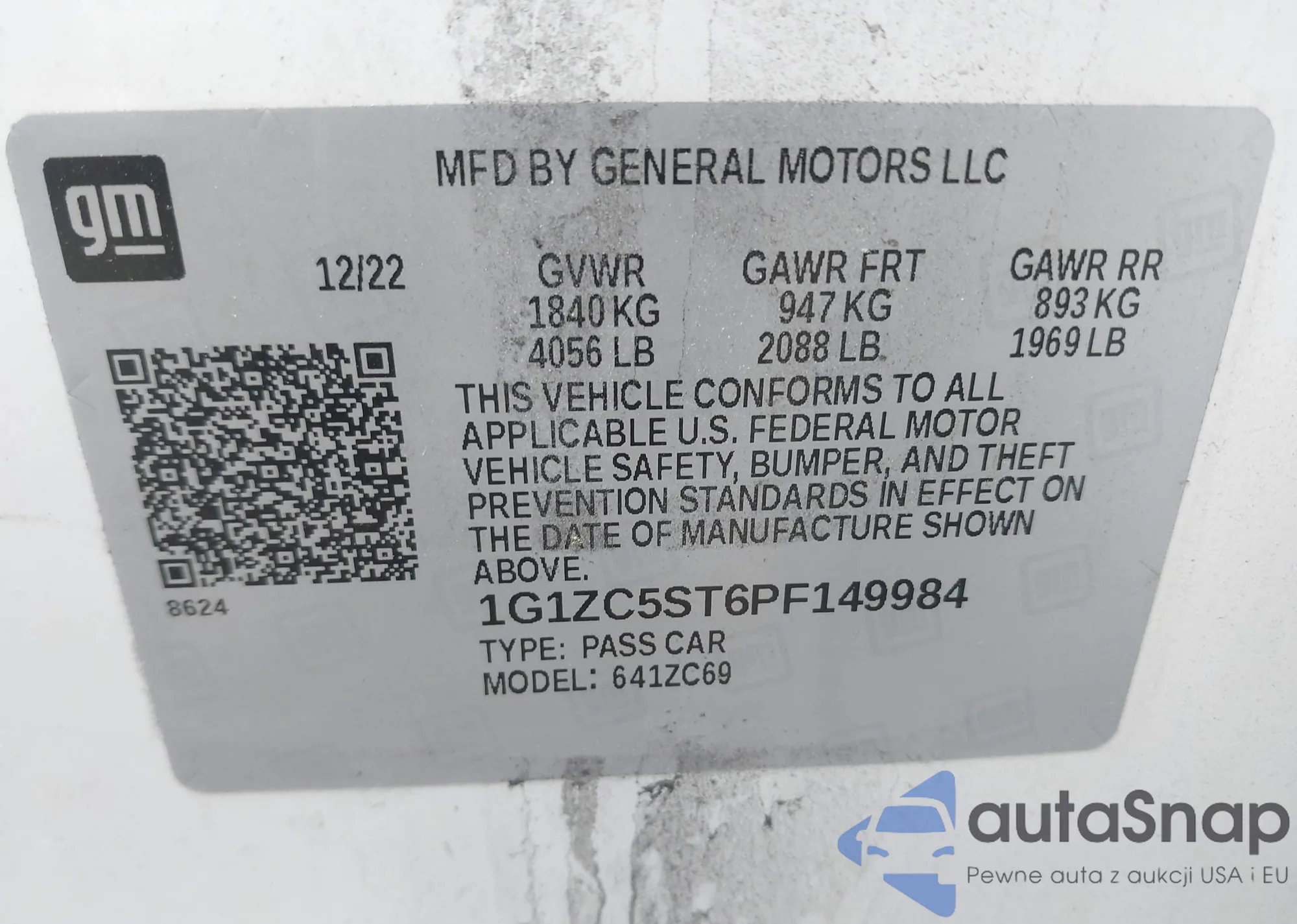 VIN: 1G1ZC5ST6PF149984