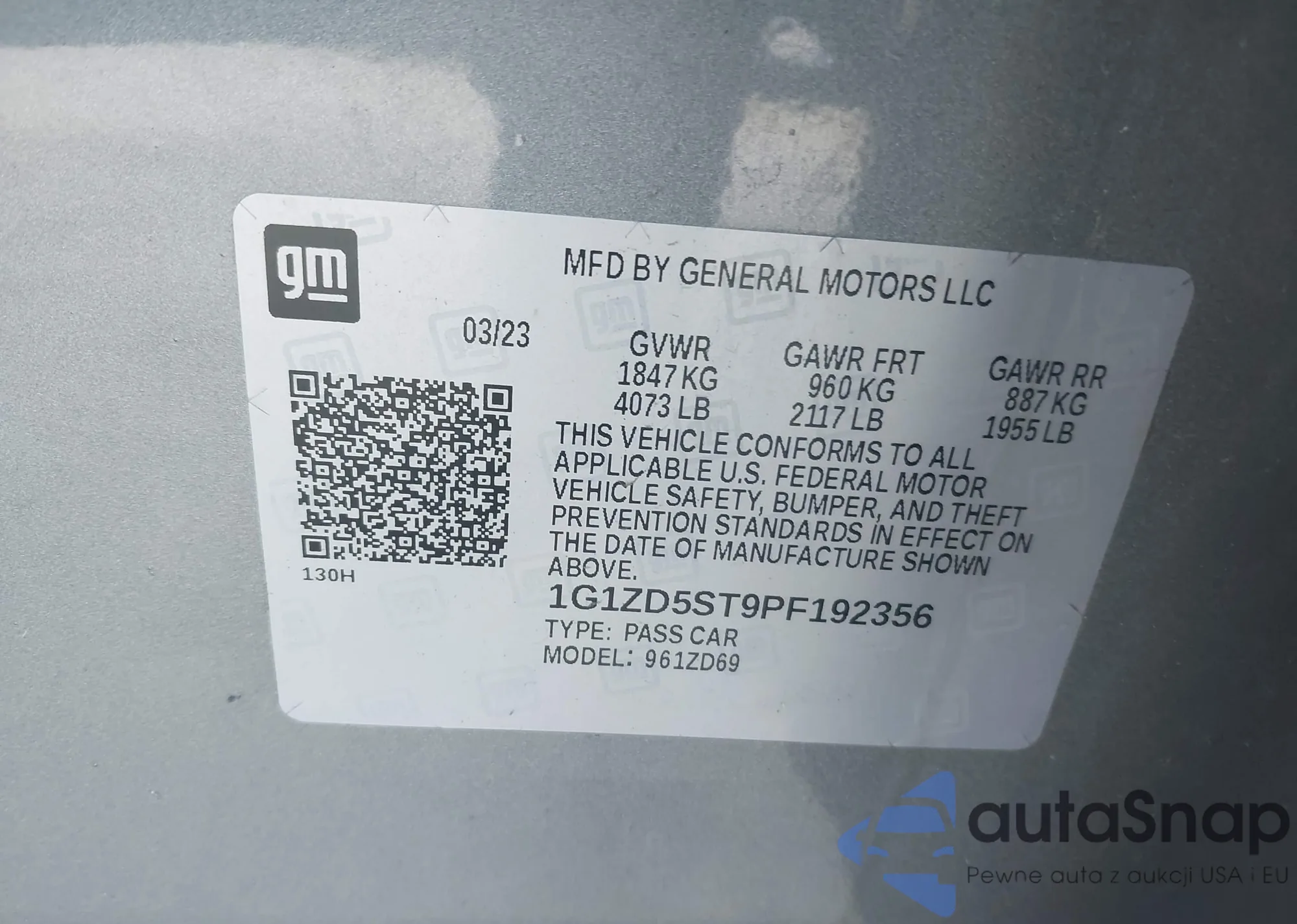 VIN: 1G1ZD5ST9PF192356